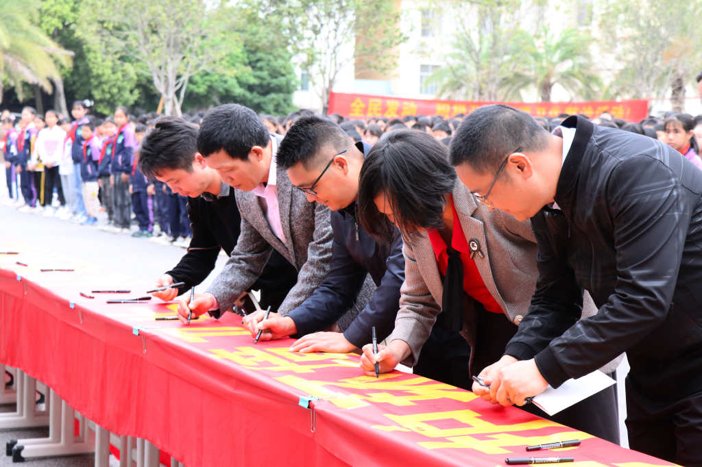 会上,各参会领导、学校分管领导、教师和学生代表参加现场签名,依次在“爱护环境卫生 从我做起 从现在做起”的横幅上签名,表示开展“小手拉大手 助力乡村振兴”农村人居环境整治提升活动的决心。