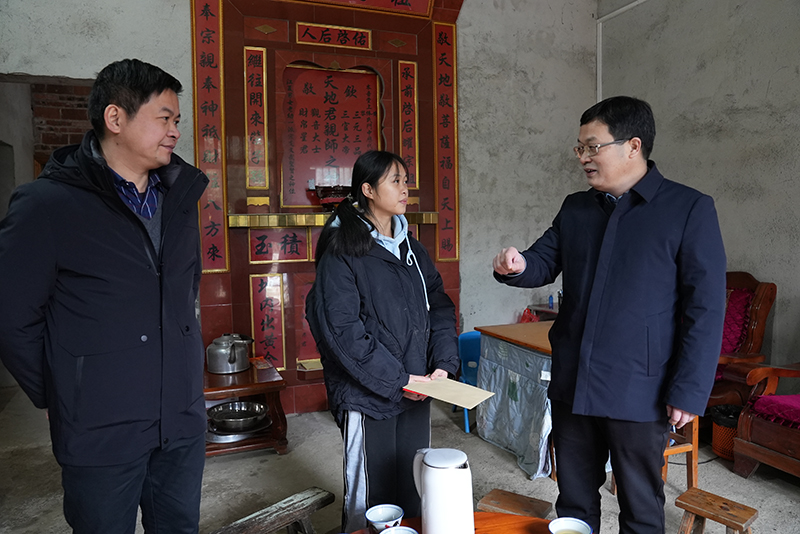 接下来,唐标明一行先后到三联村、三寨村实地走访2户脱贫户,与他们亲切交谈,详细询问他们的身体状况,以及享受政策、生产生活、子女学习生活等情况,为他们送去了慰问品和慰问金,致以新春祝福,鼓励他们保持乐观积极的生活态度,勇于面对逆境,在党和政府的关心帮助下,通过自身努力,过上幸福生活。在子女教育的问题上,唐标明语重心长关怀备至地对脱贫户嘱咐道:“孩子是家庭的希望,守护好孩子健康成长成才,才能真正拥有美好的明天。”他表示,市教育局将继续关注脱贫户的生活状况,加大教育帮扶力度,为他们提供良好的教育资源和帮助,助力脱贫户子女成长成才。