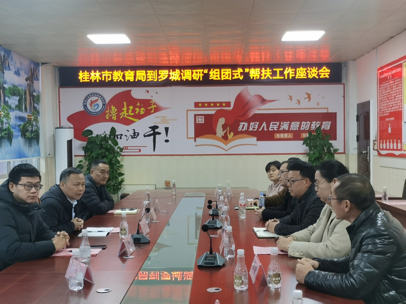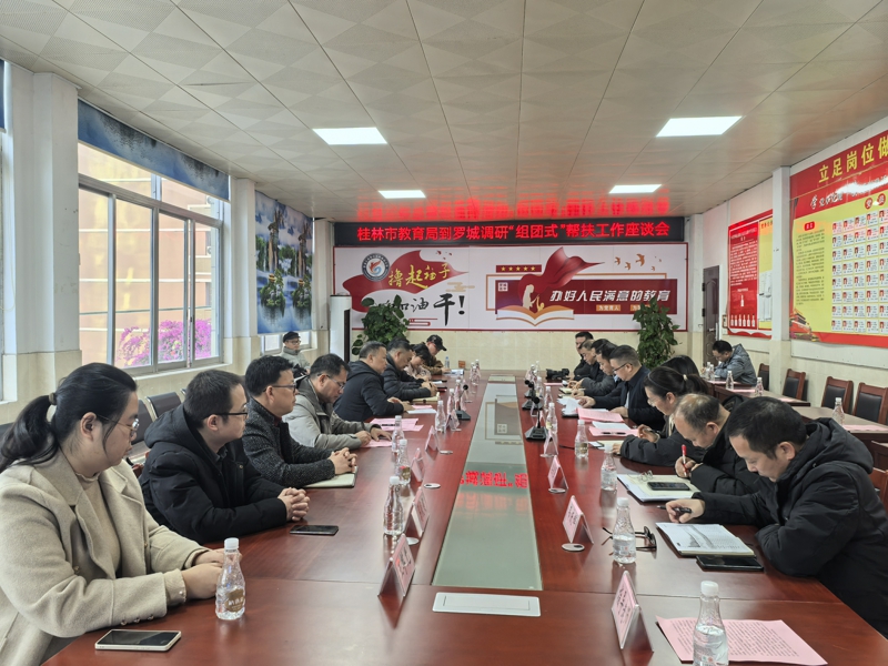 罗城县委教育工委书记、局长韦华智对桂林市教育“组团式”帮扶团队的辛勤付出表示感谢。罗城高中校长于艳从教学质量、教师素养、管理水平、资金物资引进等方面汇报了罗城高中教育人才“组团式”帮扶工作取得的成效。