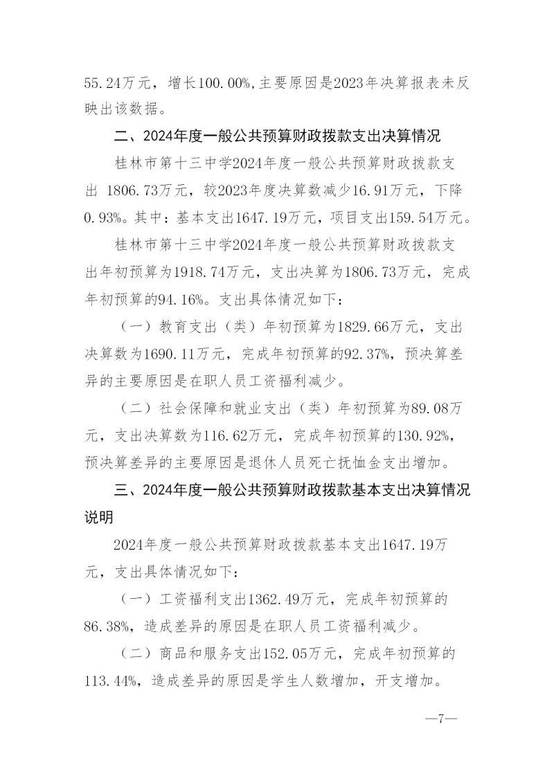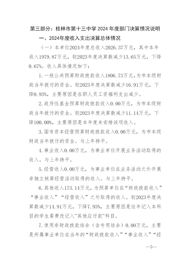 桂林市第十三中学2024年度部门决算
