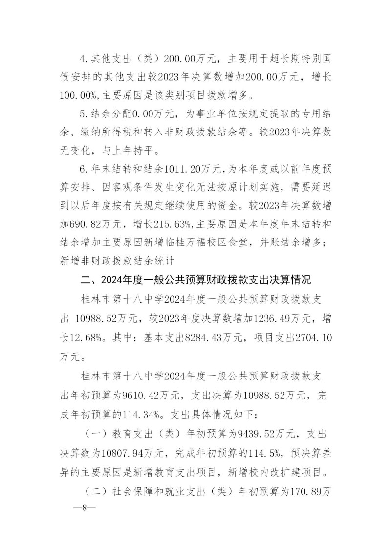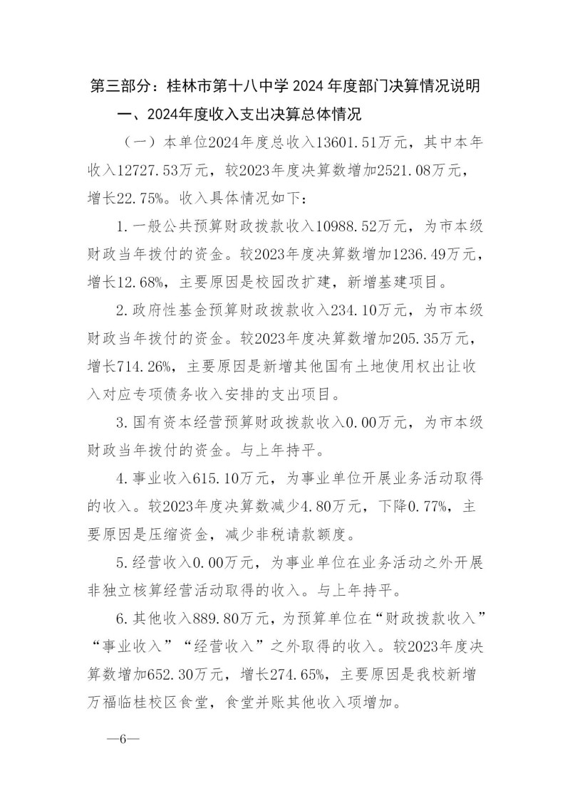 桂林市第十八中学2024年度部门决算