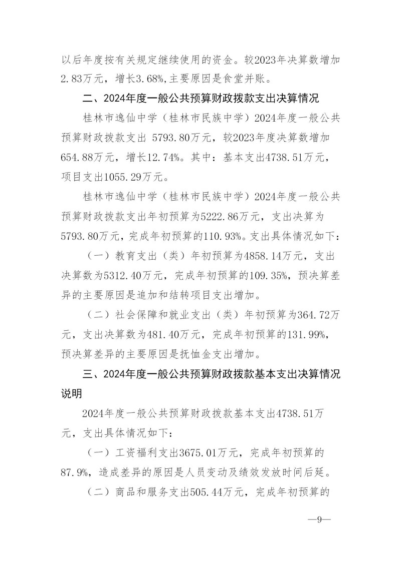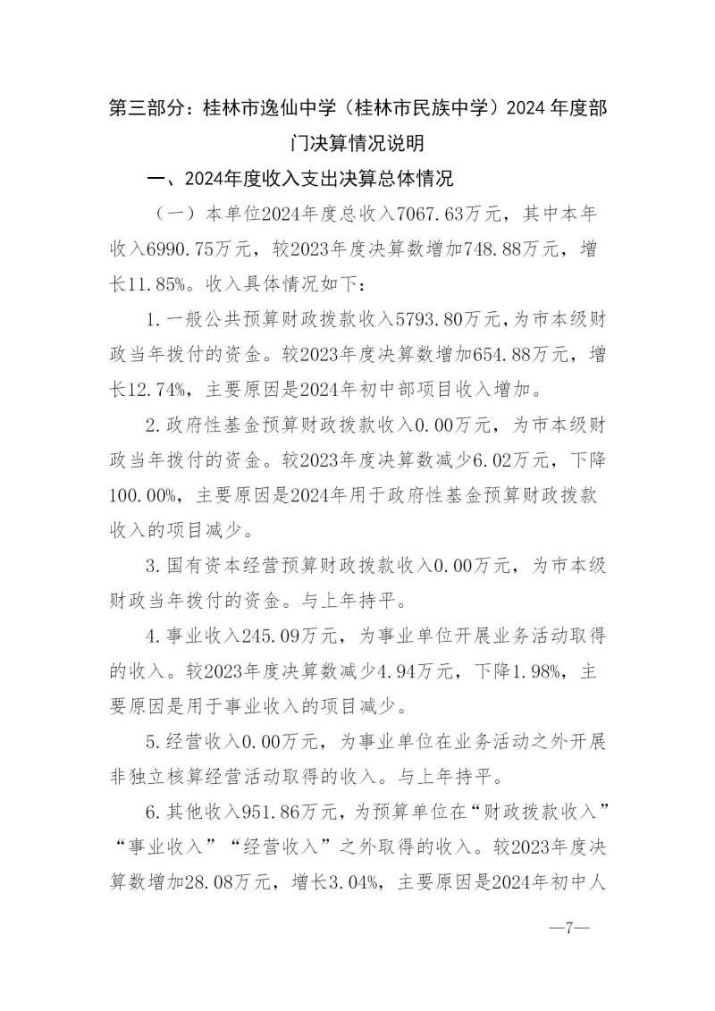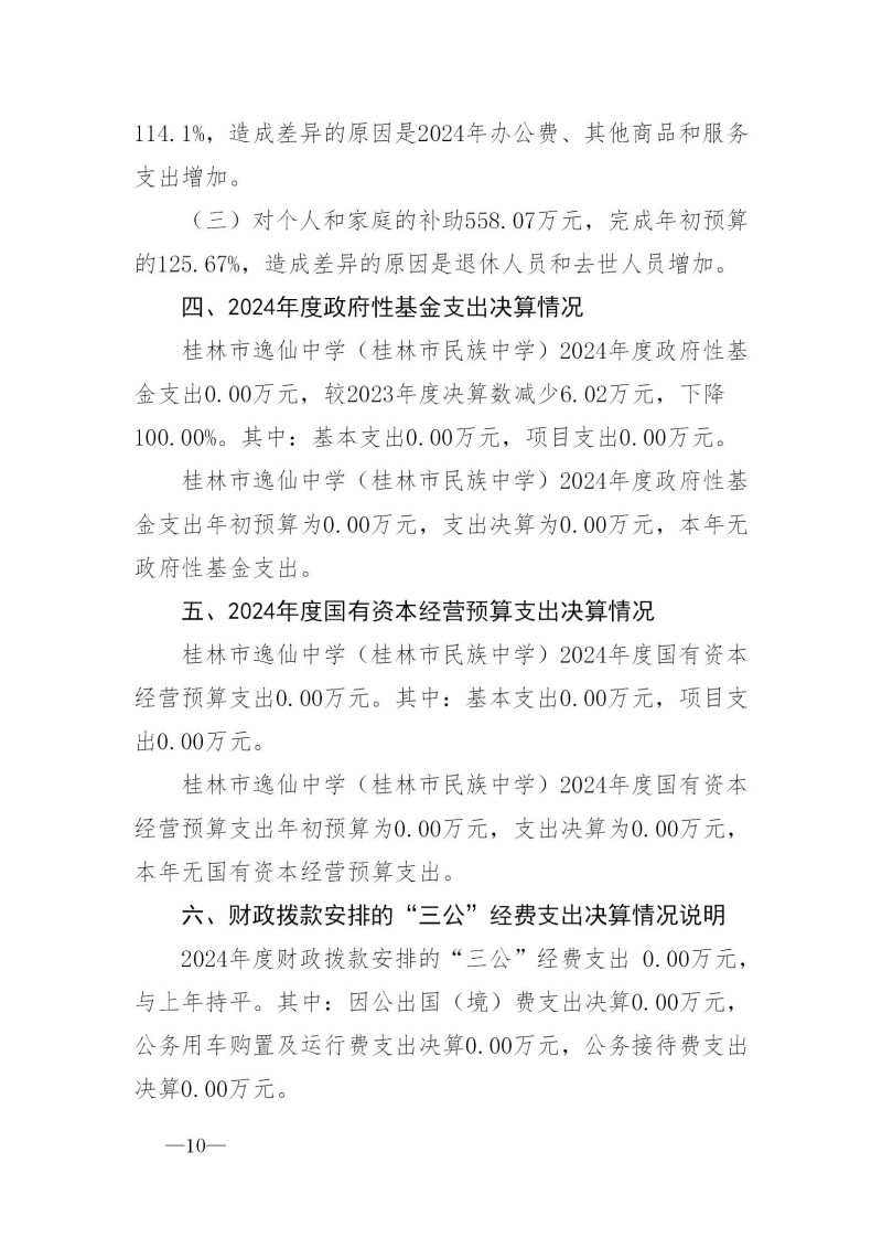 桂林市逸仙中学(桂林市民族中学)2024年度部门决算