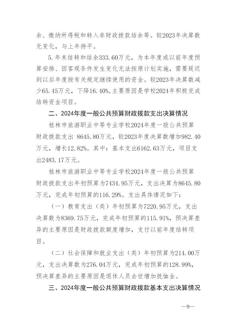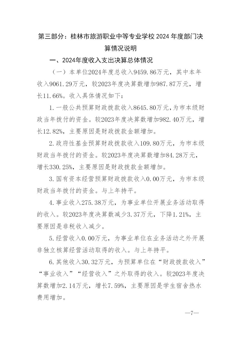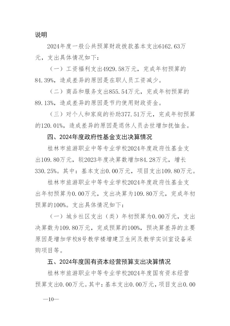 桂林市旅游职业中等专业学校2024年度部门决算