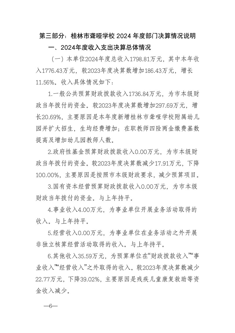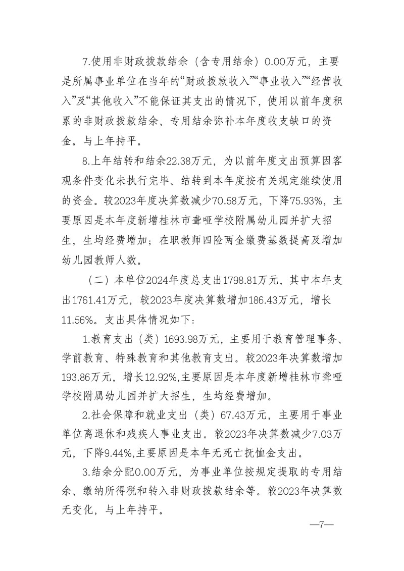 桂林市聋哑学校2024年度部门决算
