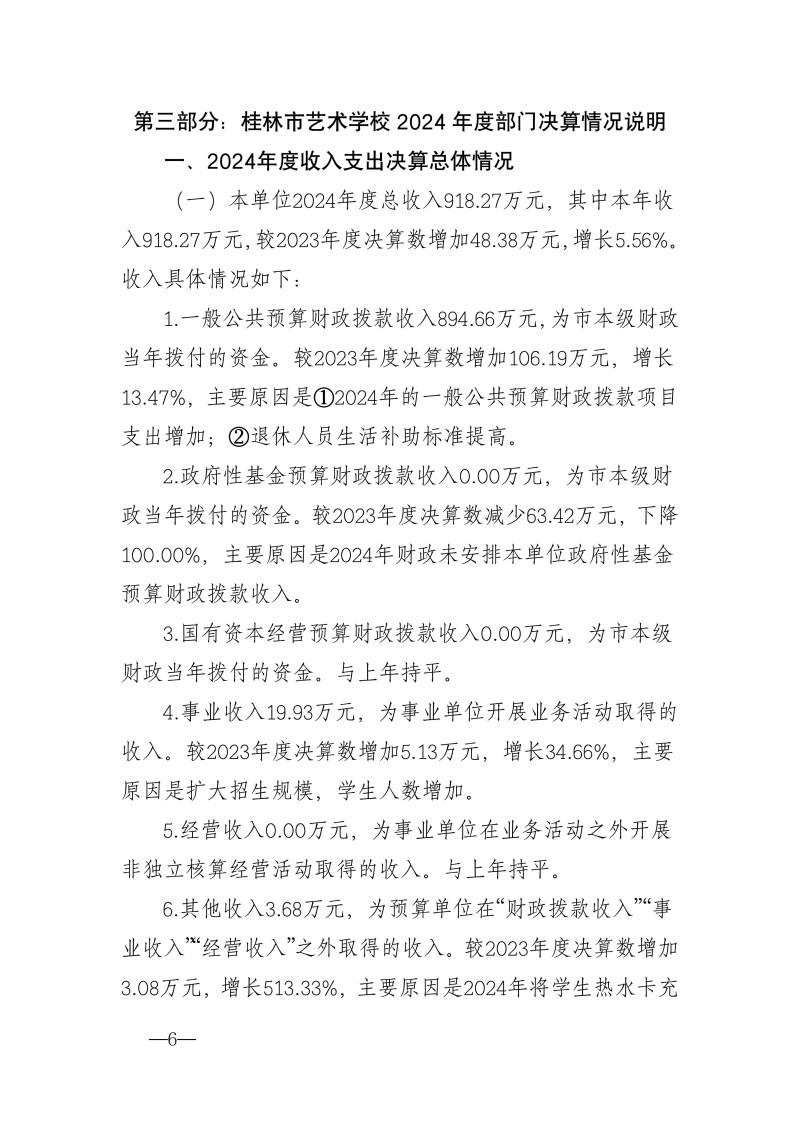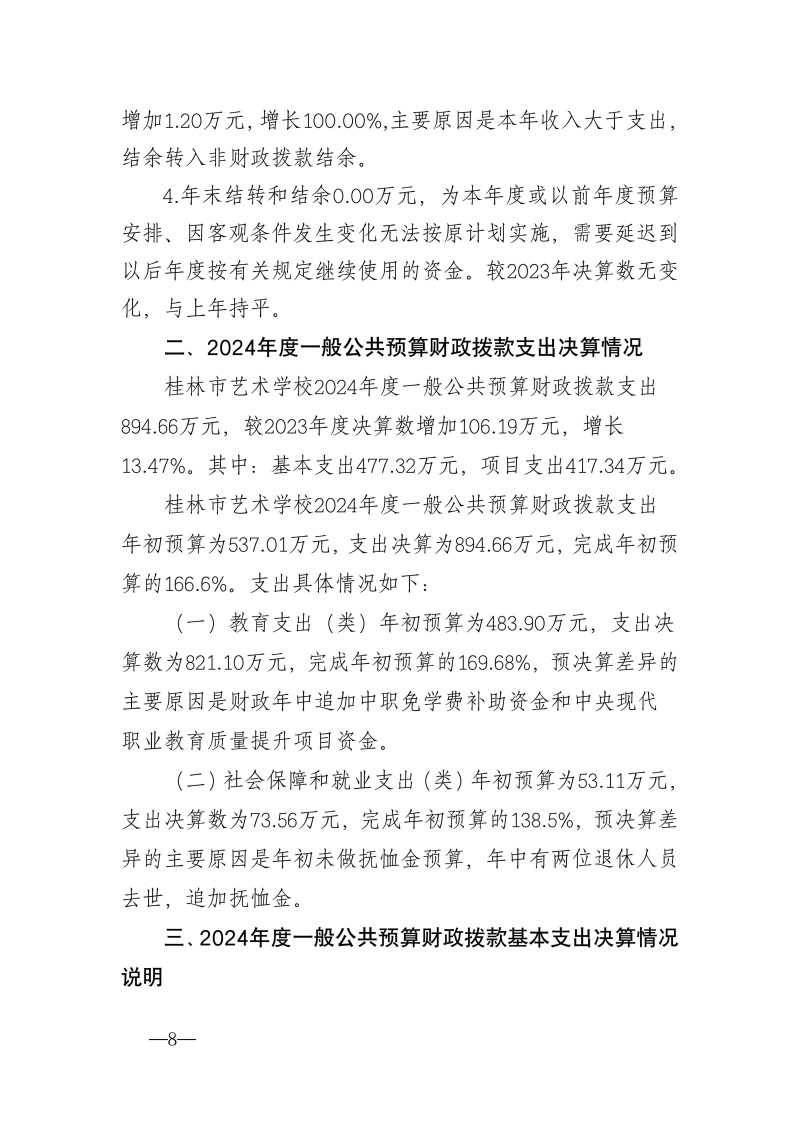 桂林市艺术学校2024年度部门决算