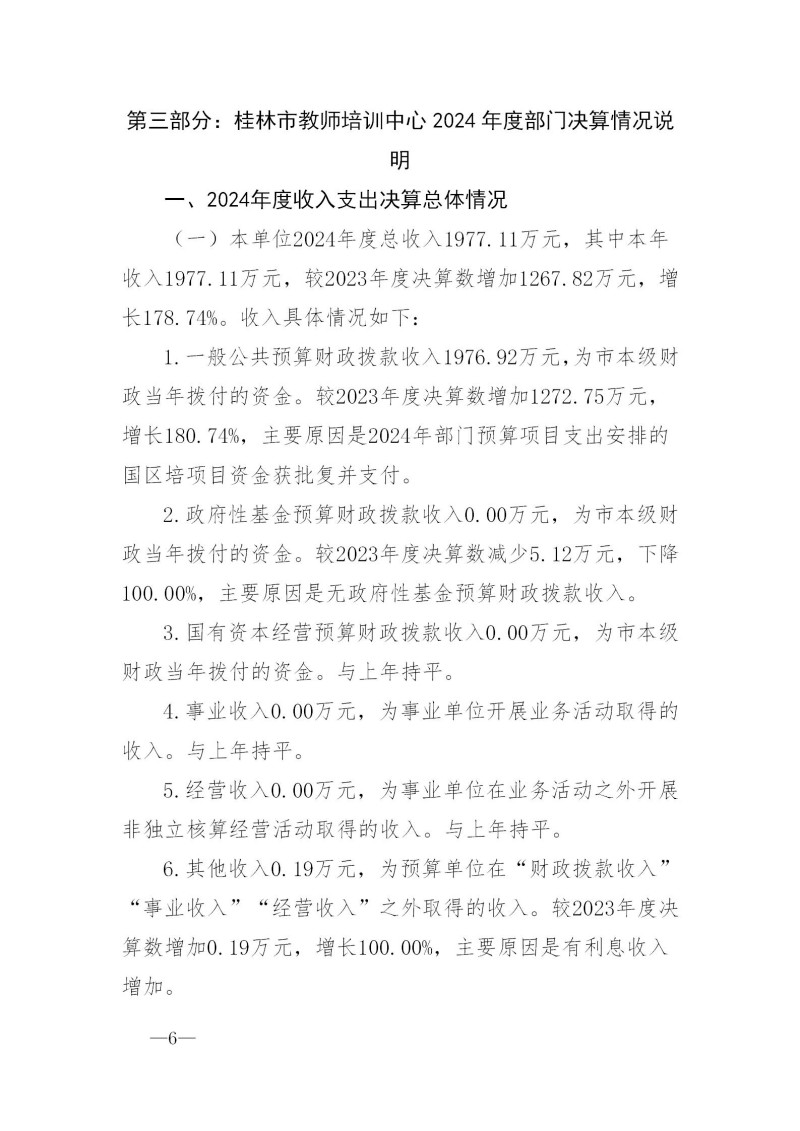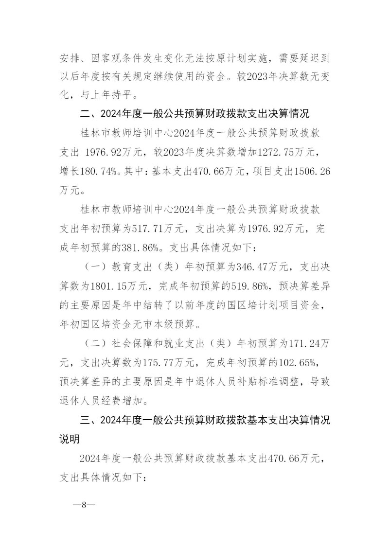 桂林市教师培训中心2024年度部门决算