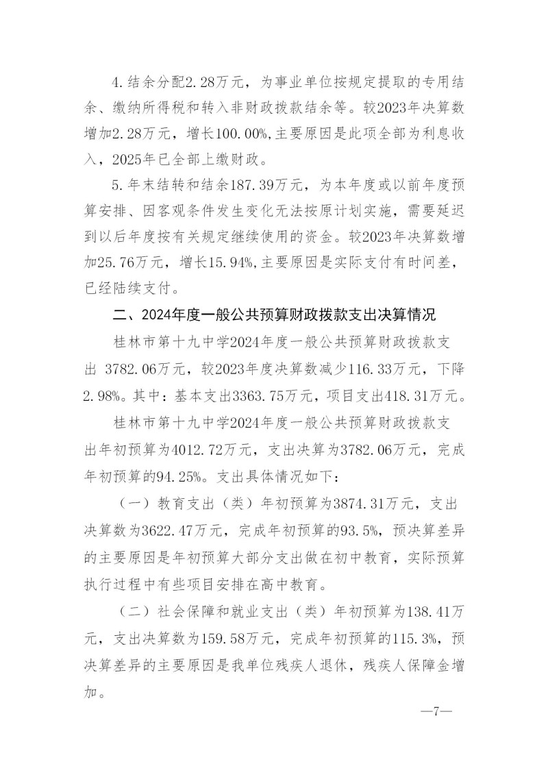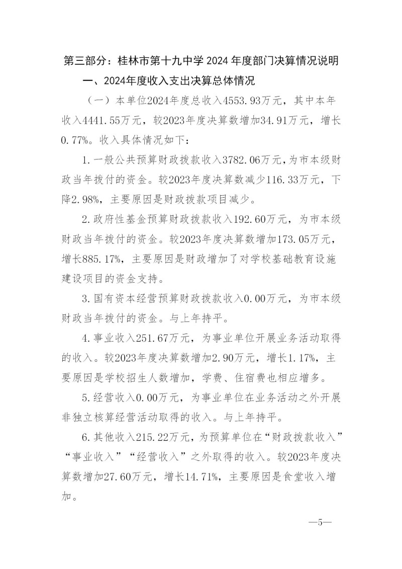 桂林市第十九中学2024年度部门决算