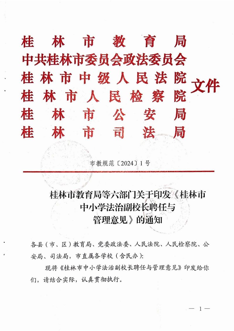 市教规范〔2024〕1号 桂林市教育局等六部门关于印发《桂林市中小学法治副校长聘任与管理意见》的通知