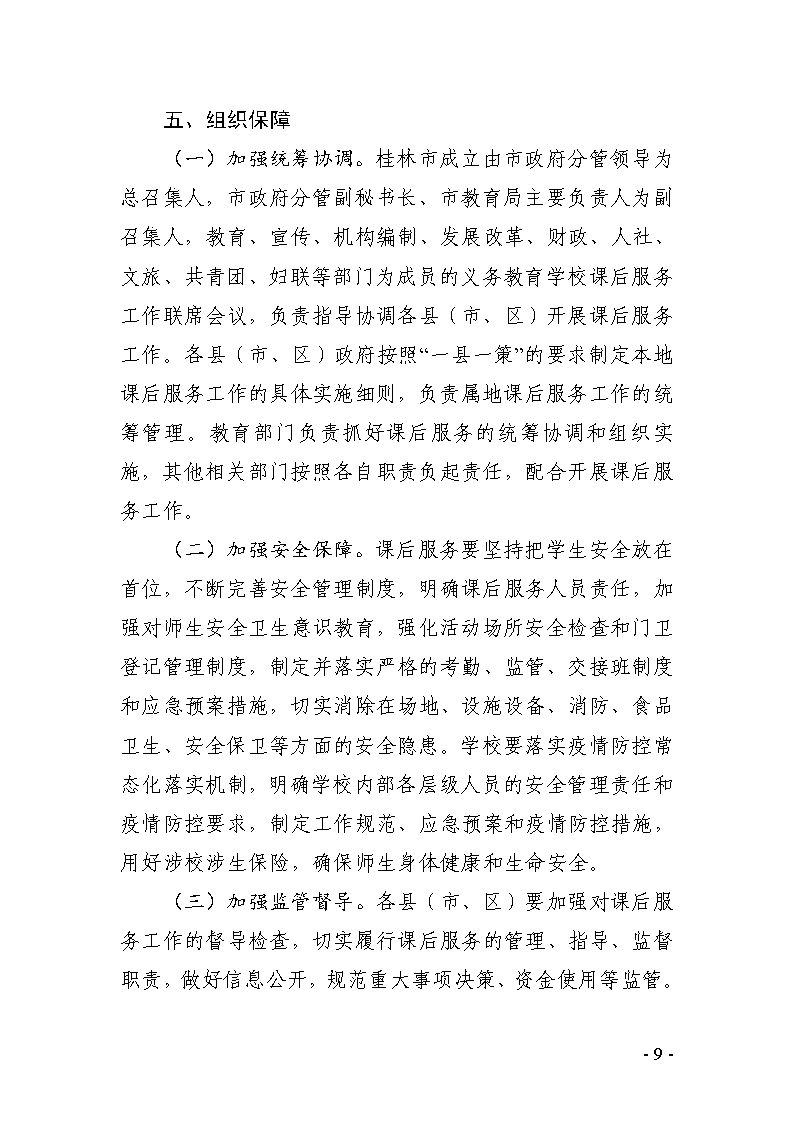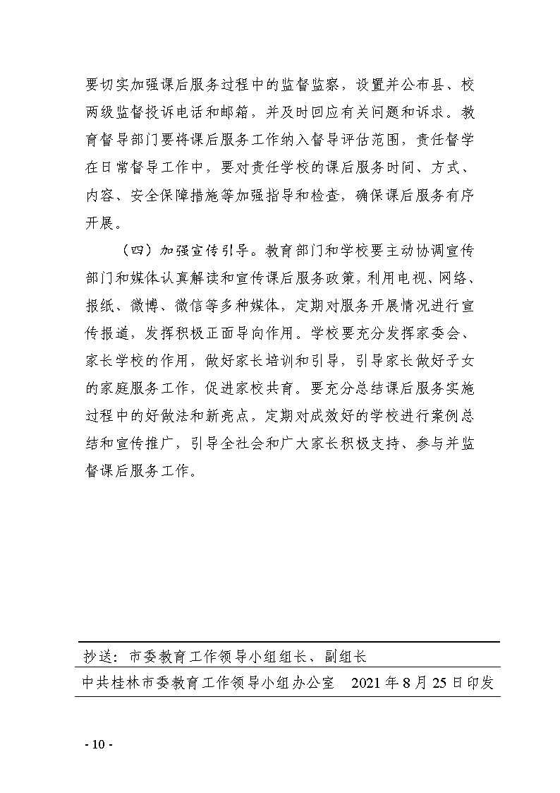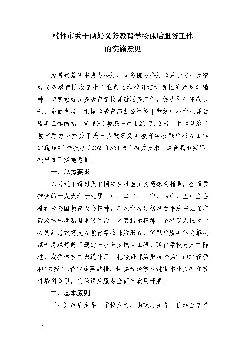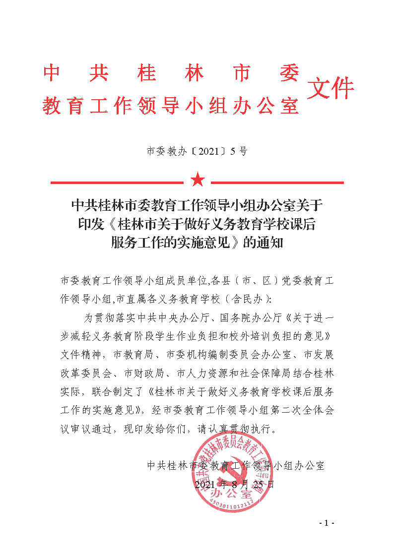 市委教办〔2021〕5号关于印发《桂林市关于做好义务教育学校课后服务工作的实施意见》的通知