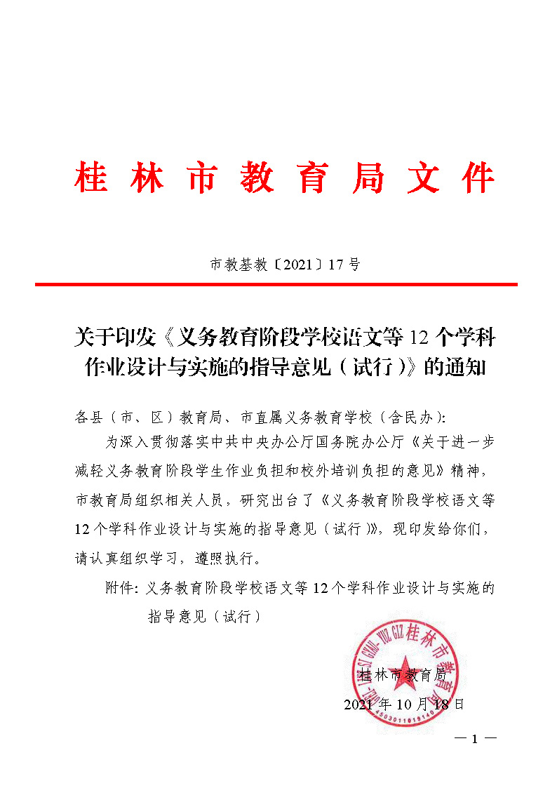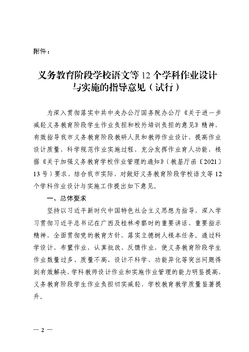 市教基教〔2021〕17号关于印发《义务教育阶段学校语文等12个学科作业设计与实施的指导意见(试行)》的通知