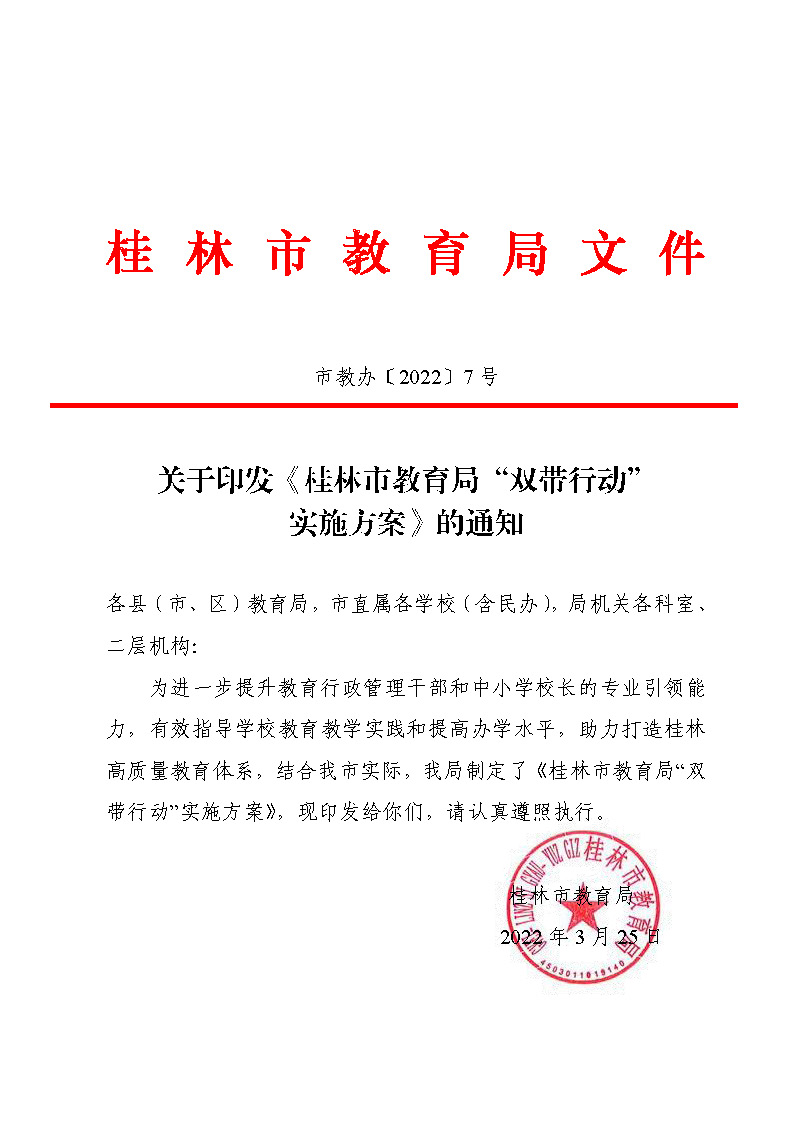 市教办〔2022〕7号关于印发《桂林市教育局“双带行动” 实施方案》的通知