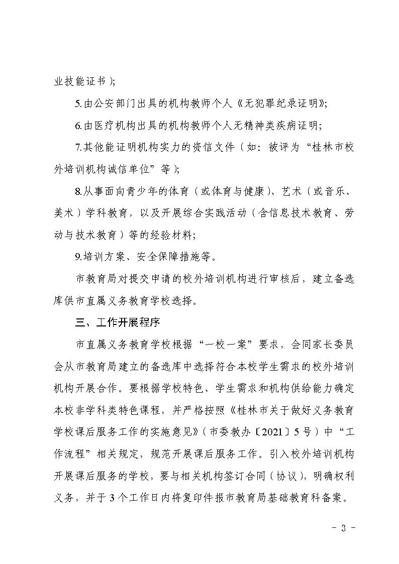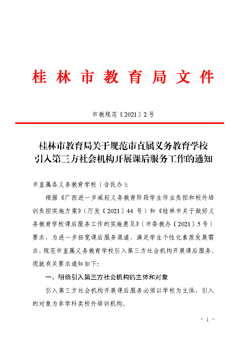 市教规范〔2021〕2号桂林市教育局关于规范市直属义务教育学校引入第三方社会机构开展课后服务工作的通知