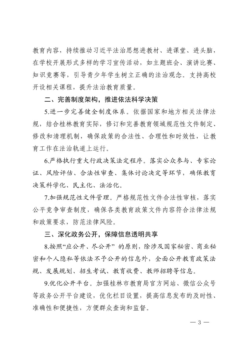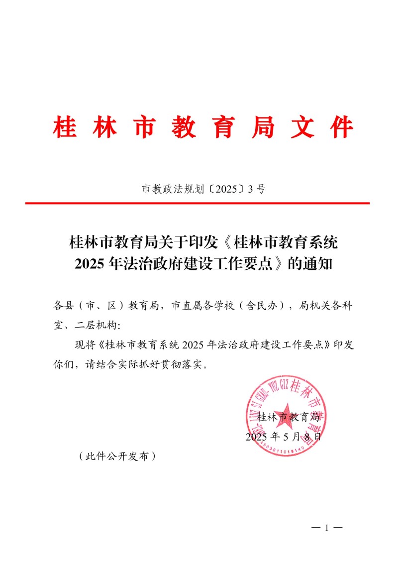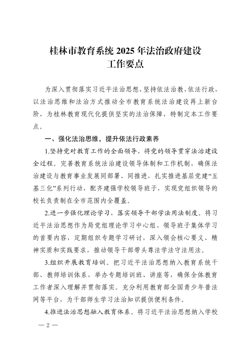 市教政法规划〔2025〕3 号 桂林市教育局关于印发《桂林市教育系统2025年法治政府建设工作要点》的通知
