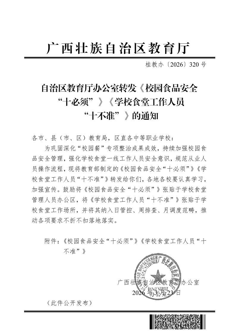 自治区教育厅办公室转发《校园食品安全“十必须”》《学校食堂工作人员“十不准”》的通知