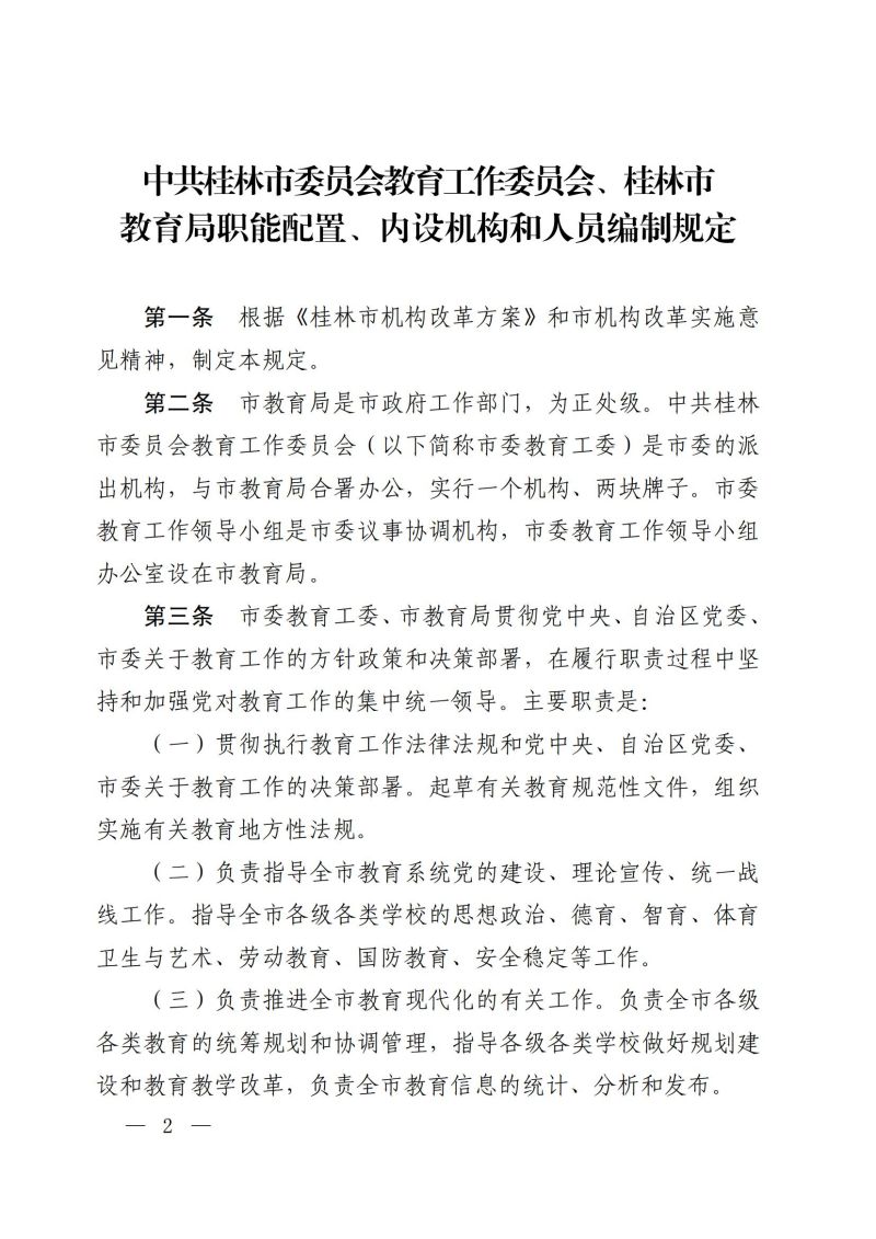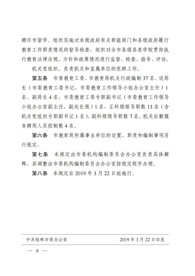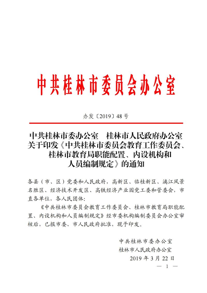 办发〔2019〕48号 中共桂林市委办公室 桂林市人民政府办公室关于印发《中共桂林市委员会教育工作委员会、桂林市教育局职能配置、内设机构和人员编制规定》的通知