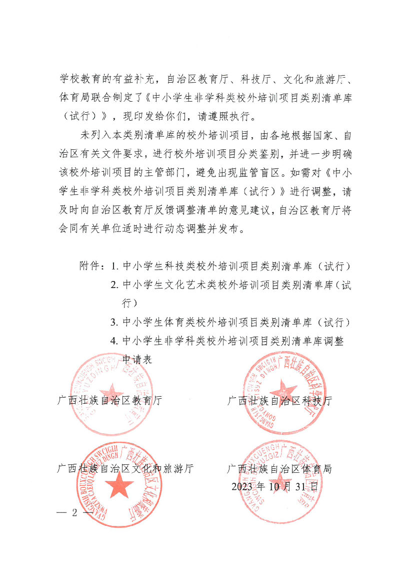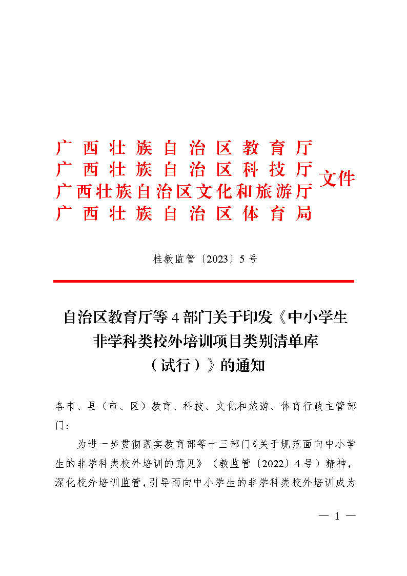 自治区教育厅等 4 部门关于印发《中小学生非学科类校外培训项目类别清单库(试行)》的通知