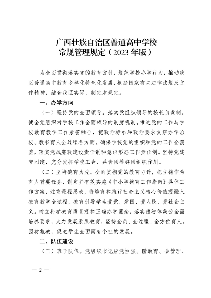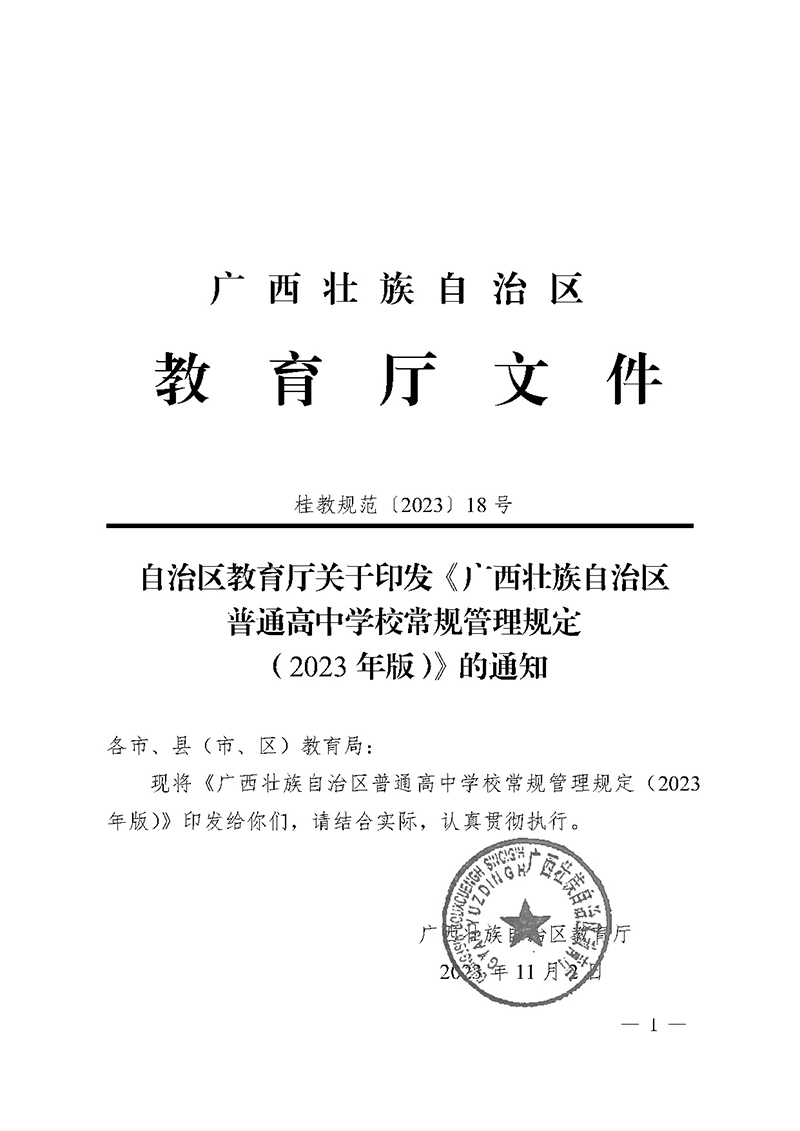 自治区教育厅关于印发《广西壮族自治区普通高中学校常规管理规定(2023年版)》的通知