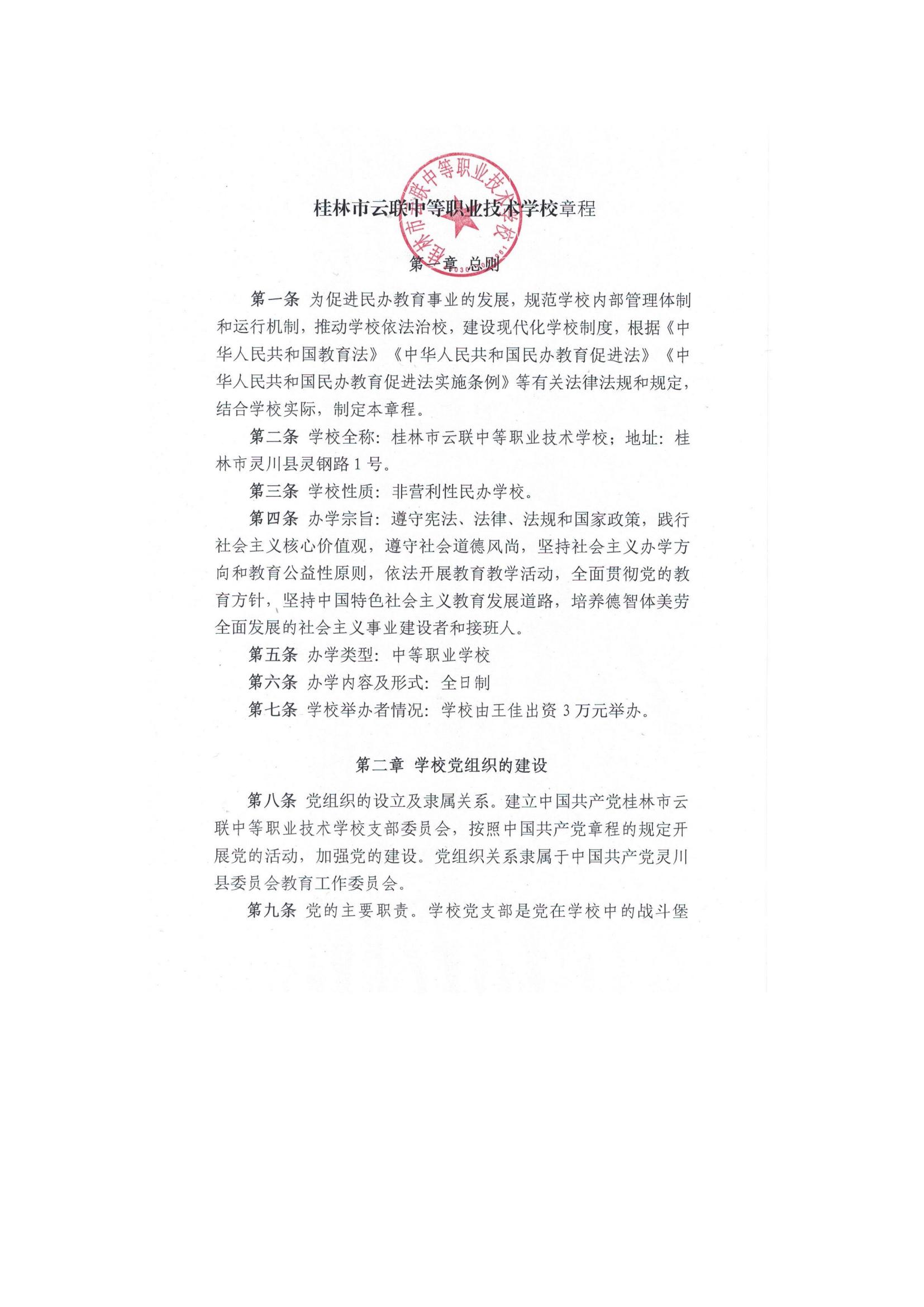 桂林市云联中等职业技术学校章程