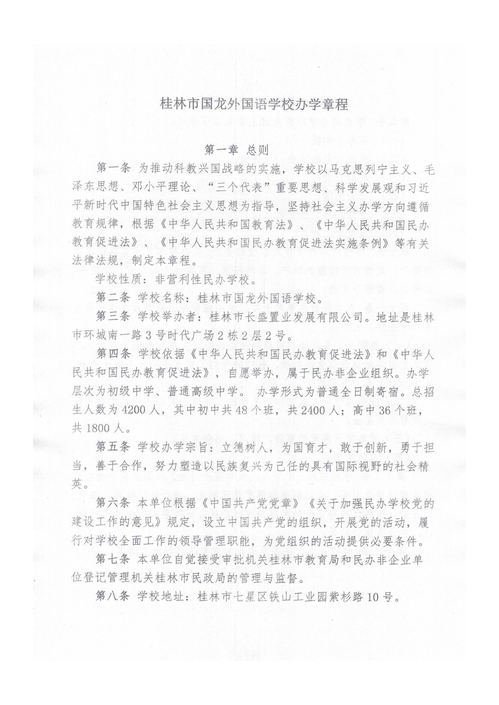 桂林市国龙外国语学校办学章程