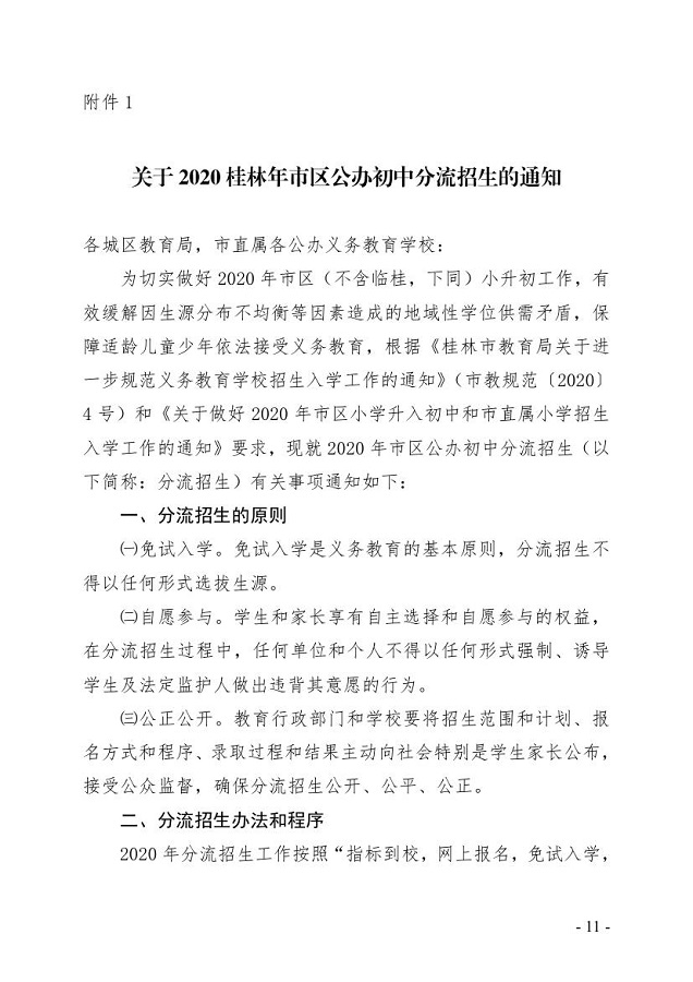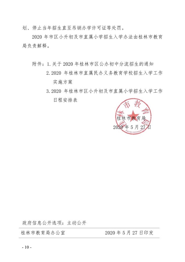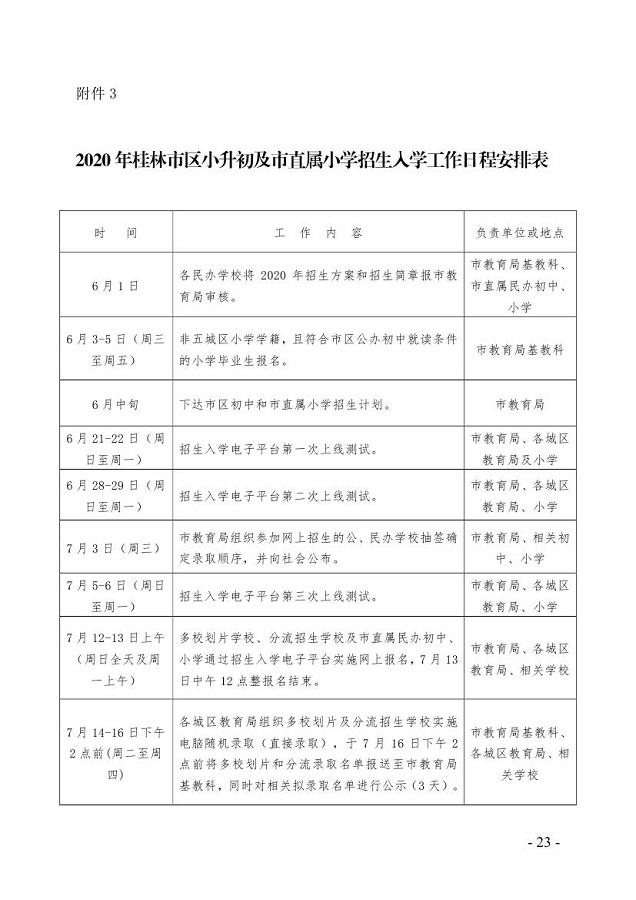 市教办【2020】15号 桂林市教育局关于做好2020年市区小学升入初中和市直属小学招生入学工作的通知