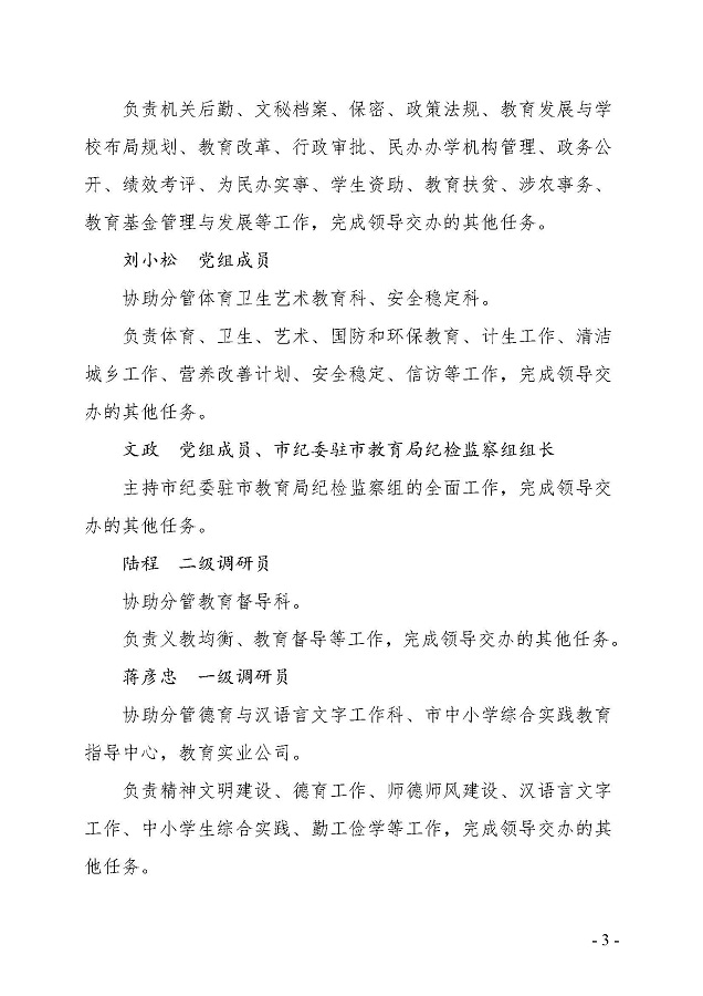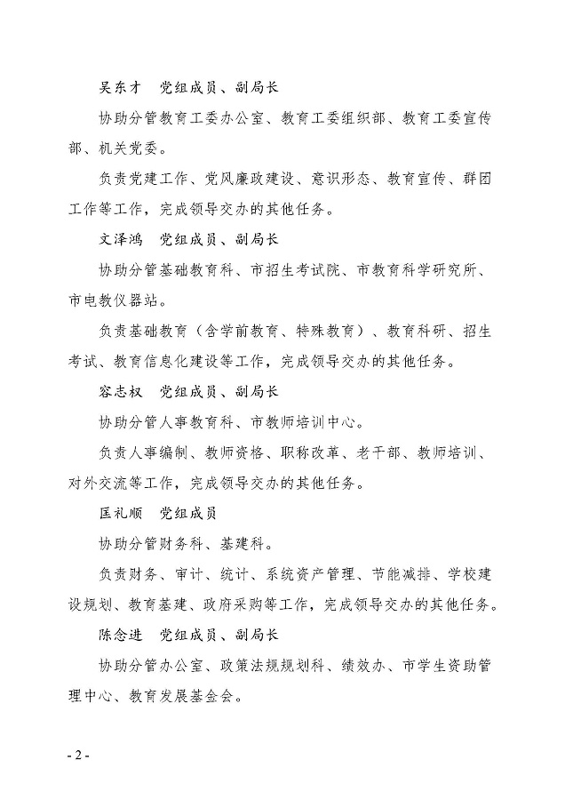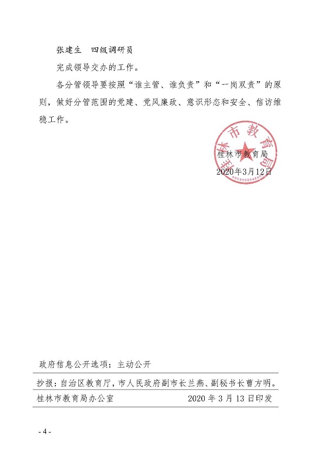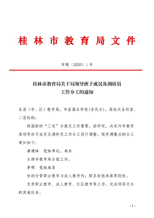 桂林市教育局关于局领导班子成员及调研员工作分工的通知