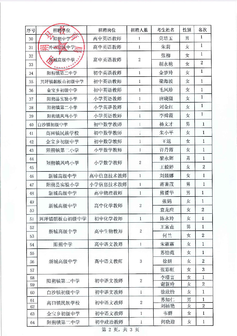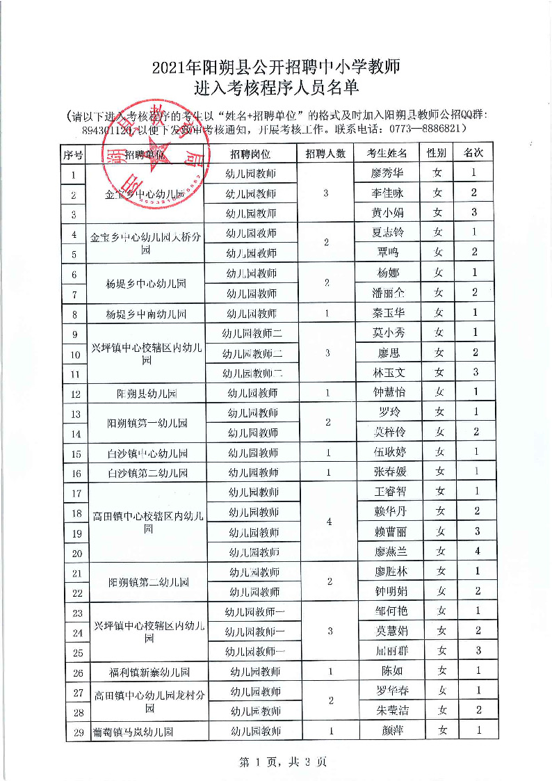 2021年阳朔县公开招聘中小学进入考核程序人员名单