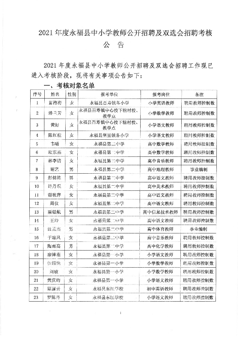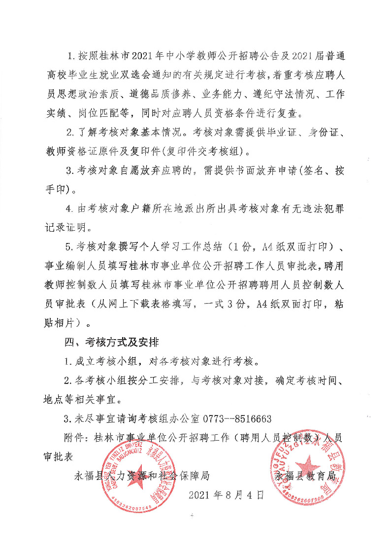2021年度永福县中小学教师公开招聘及双选会招聘考核公告