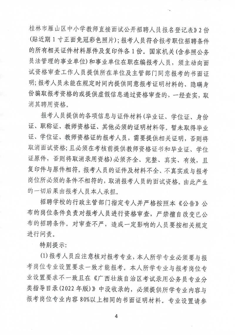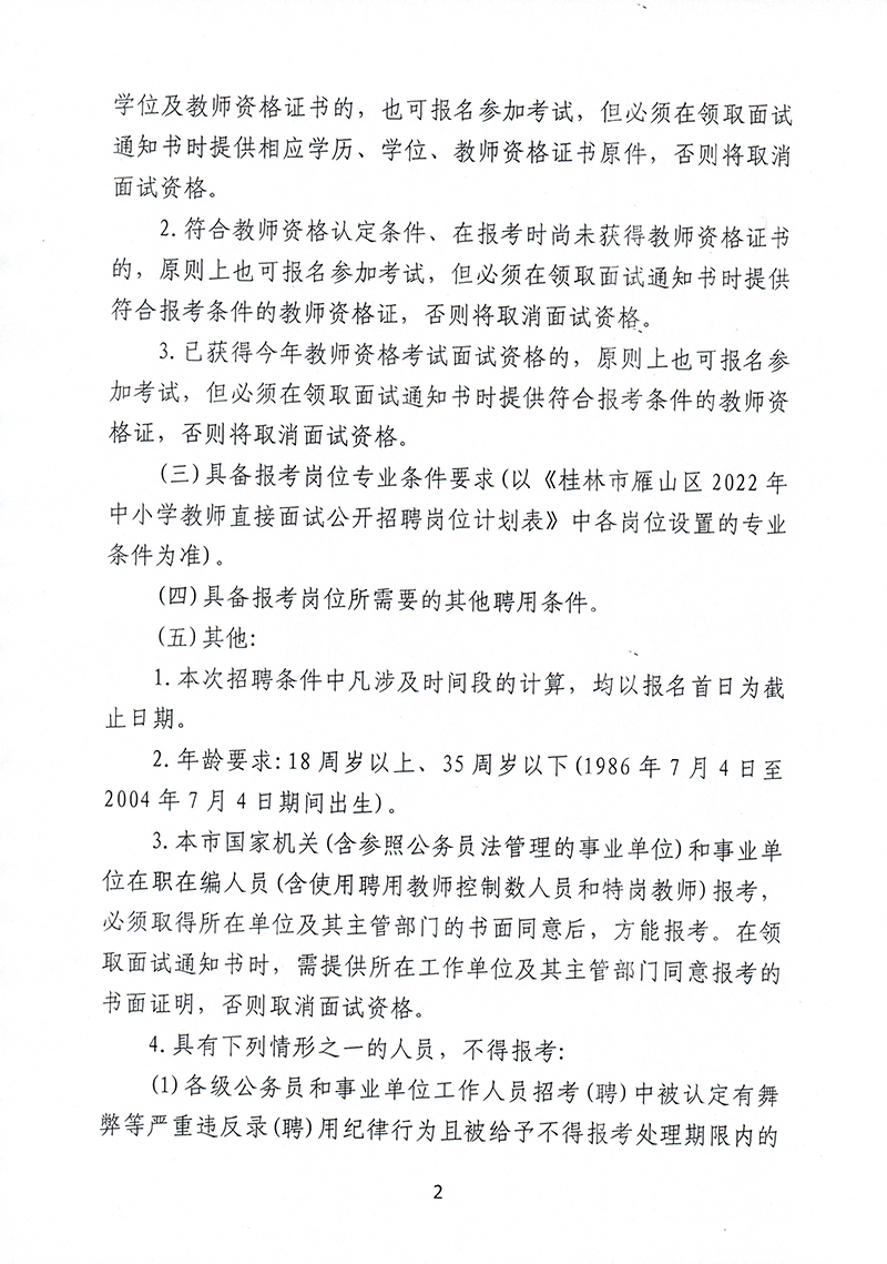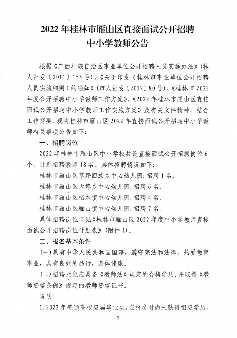 2022年桂林市雁山区直接面试公开招聘中小学教师公告