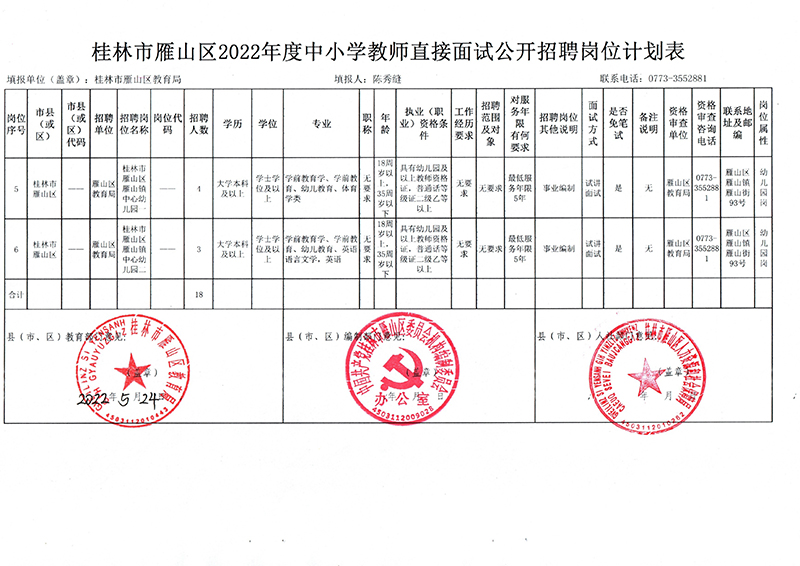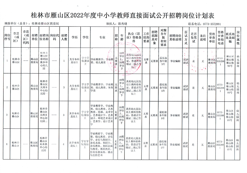 附件1:桂林市雁山区2022年度中小学教师直接面试公开招聘岗位计划表.xls