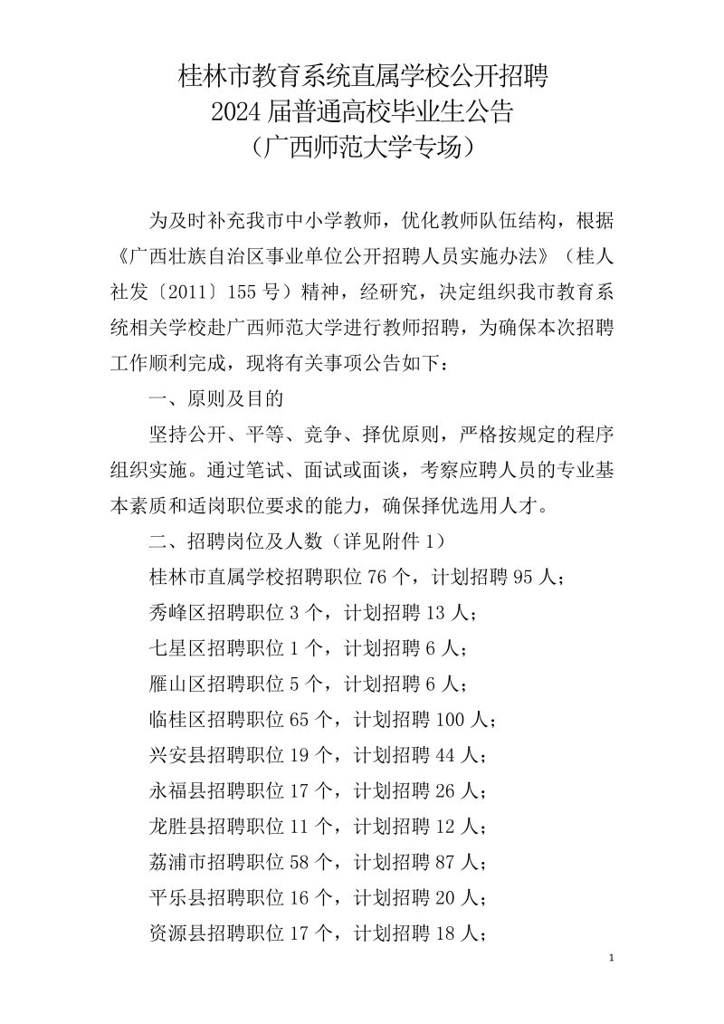 桂林市教育系统直属学校公开招聘2024届普通高校毕业生公告 (广西师范大学专场)