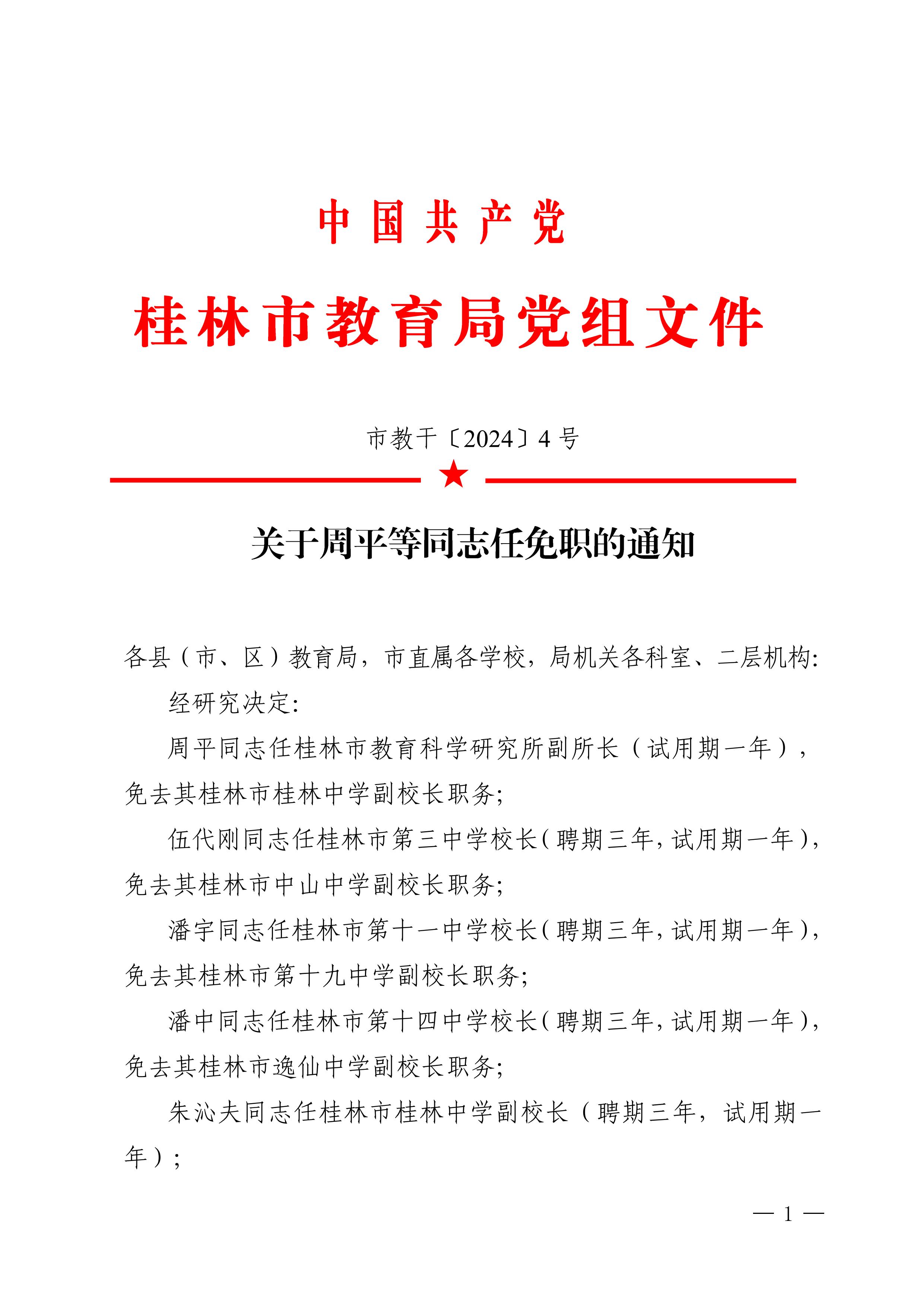 市教干〔2024〕4号 关于周平等同志任免职的通知