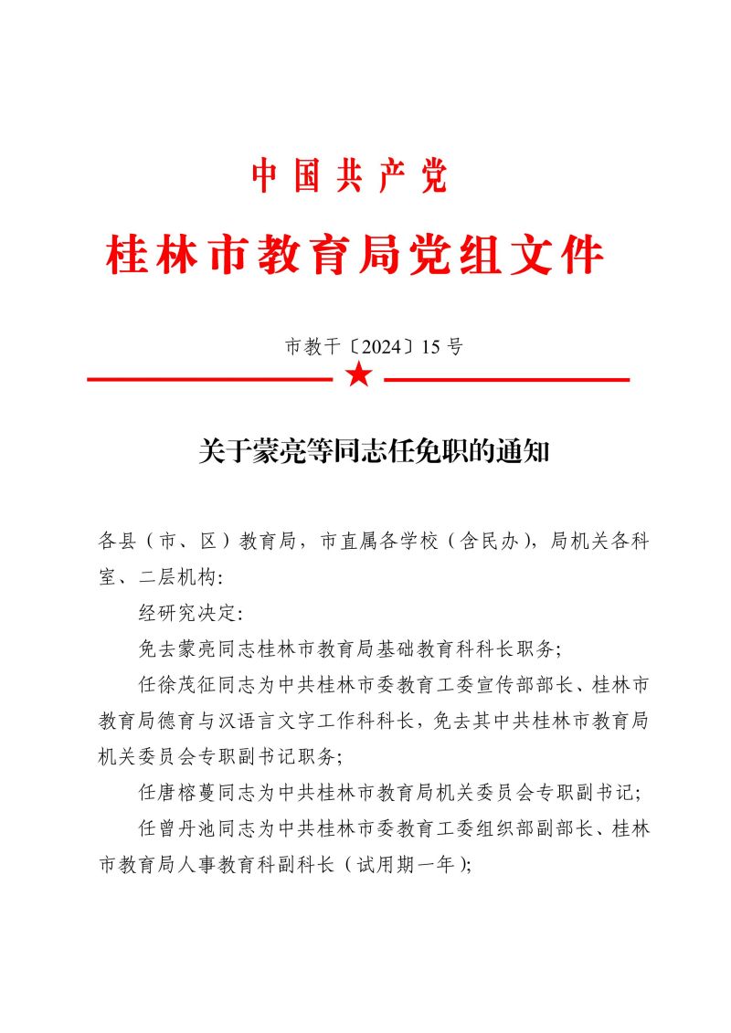 市教干〔2024〕15 号 关于蒙亮等同志任免职的通知
