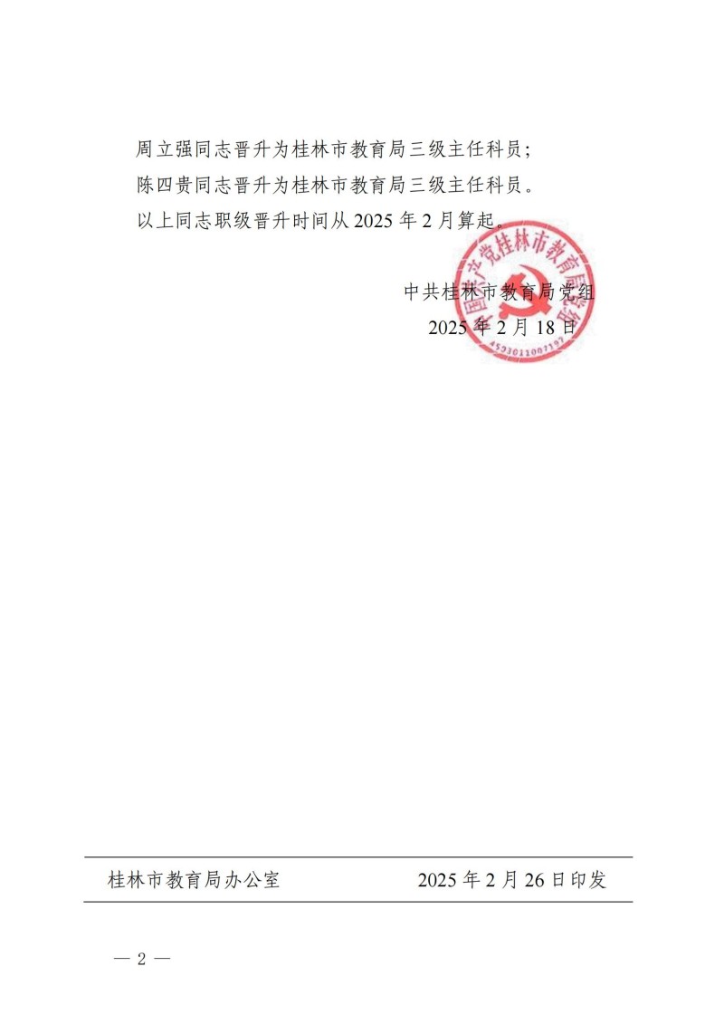 市教干〔2025〕5 号中共桂林市教育局党组关于徐茂征等同志职级晋升的通知