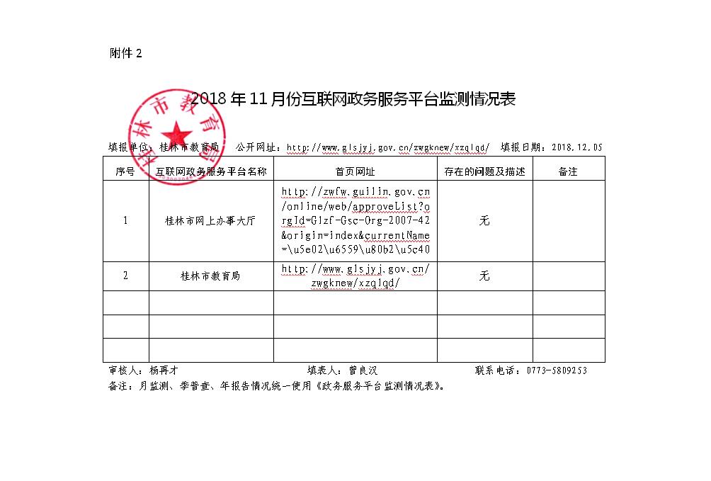 2018年11月份互联网政务服务平台监测情况表