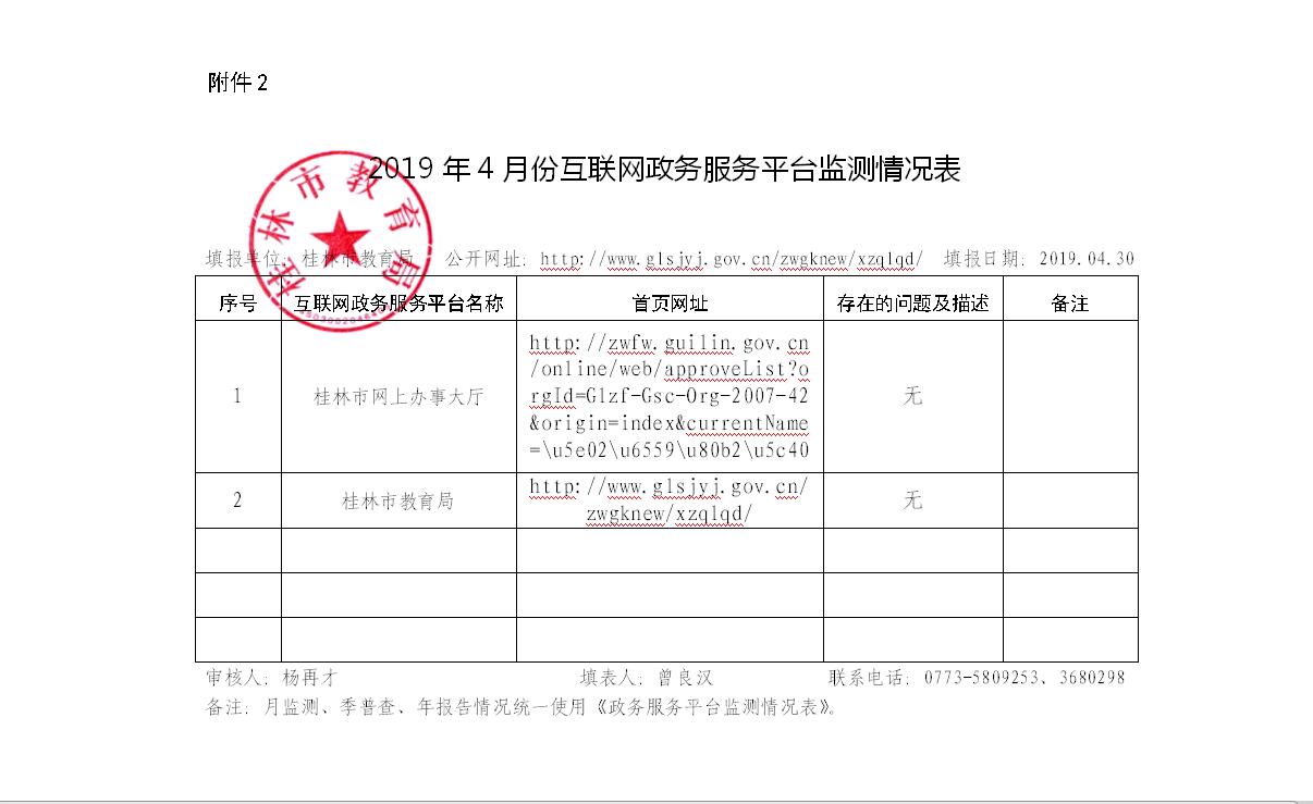 2019年4月份互联网政务服务平台监测情况表
