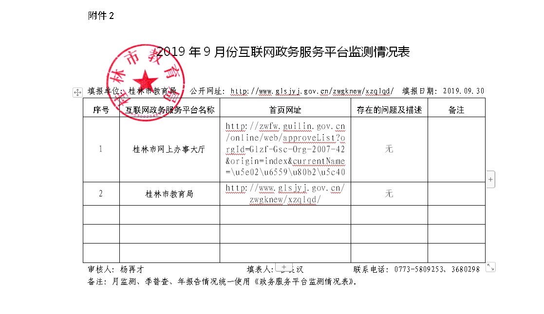 2019年9月份互联网政务服务平台监测情况表