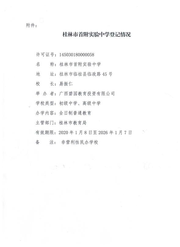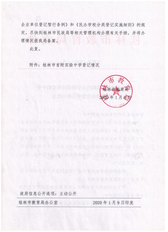 关于同意首都师范大学附属桂林实验中学变更举办者变更名称的批复(市教民〔2020〕1号)