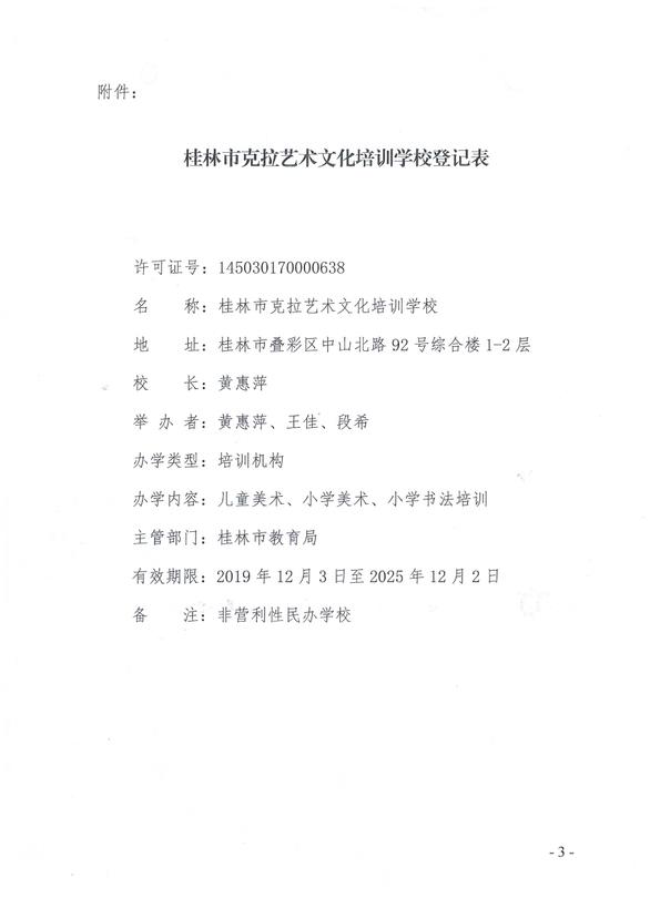关于同意桂林市克拉艺术文化培训学校变更场地的批复 (市教民〔2019〕24号)