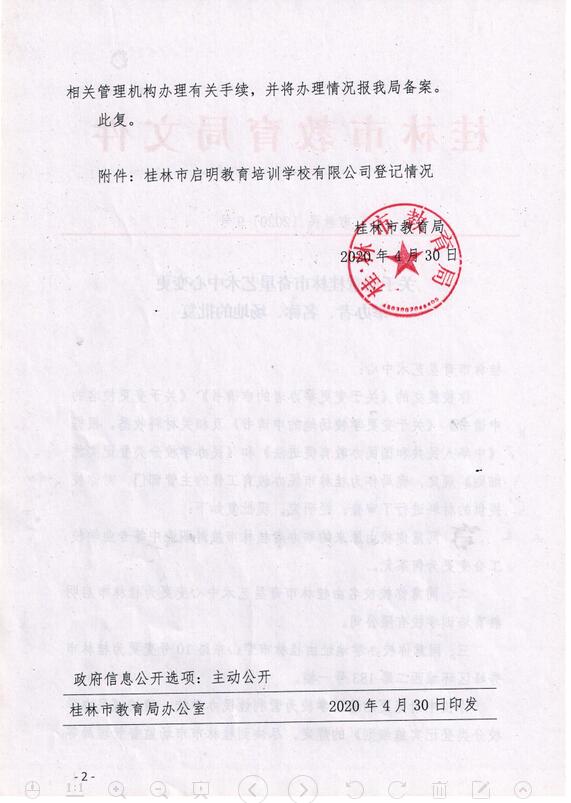 关于同意桂林市奇星艺术中心变更举办者变更名称变更场地的批复(市教民〔2020〕9号)