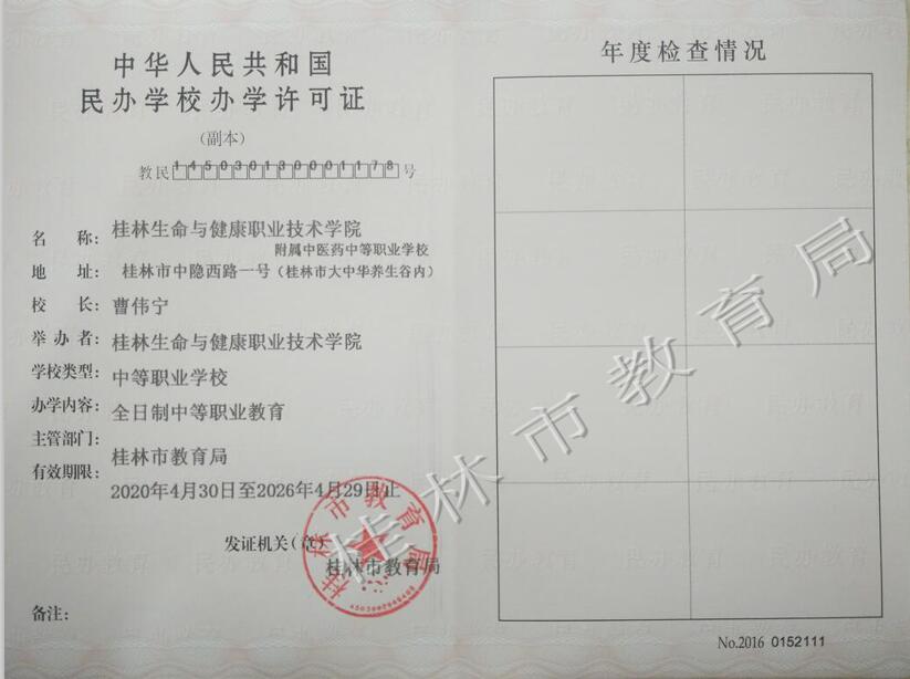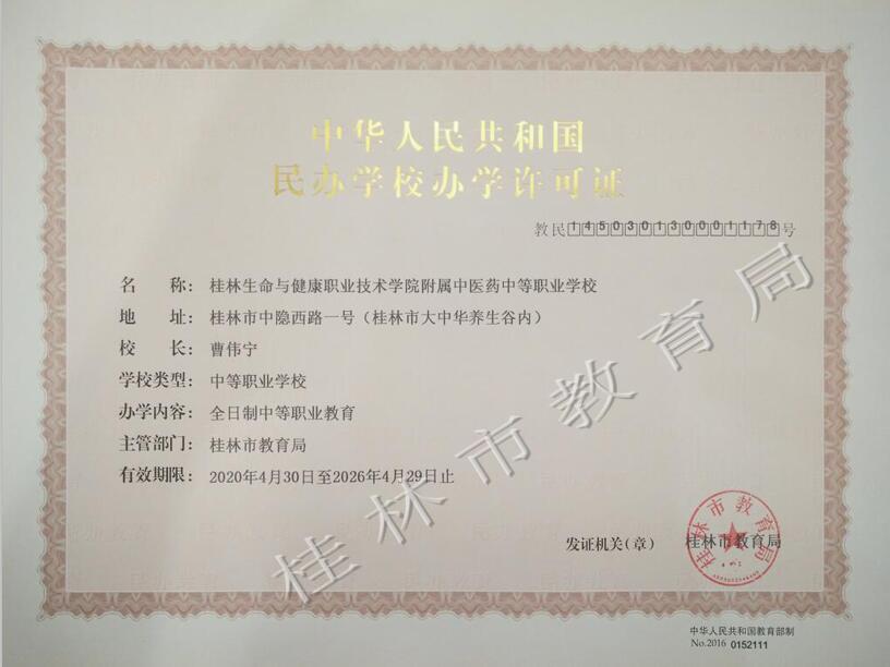 桂林生命与健康职业技术学院附属中医药中等职业学校办学许可证(正副本)