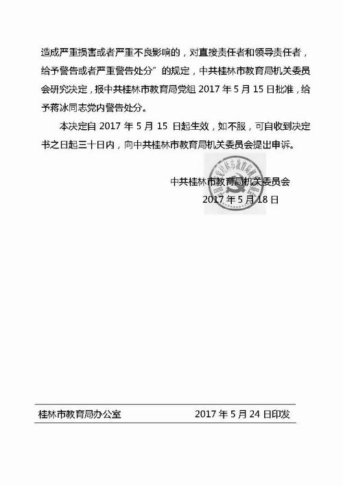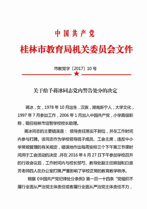 关于给予蒋冰同志党内警告处分的决定
