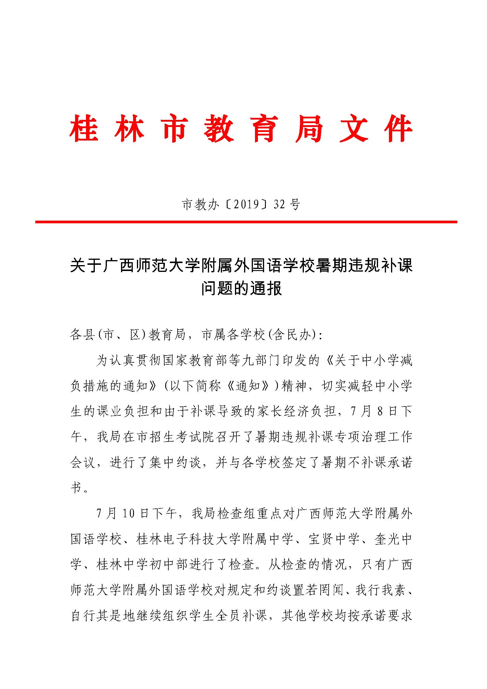 关于广西师范大学附属外国语学校暑期违规补课问题的通报_页面_1