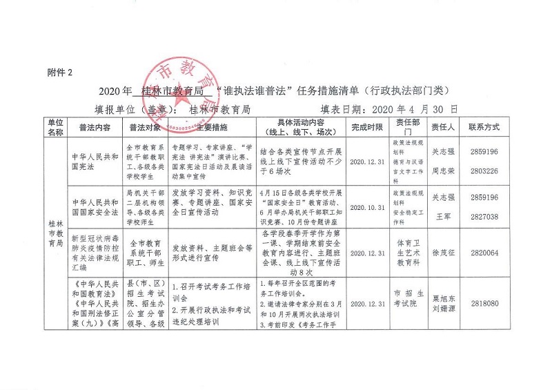 2020年桂林市教育局“谁执法谁普法”任务措施清单