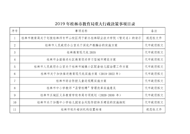 2019年桂林市教育局重大行政决策事项目录