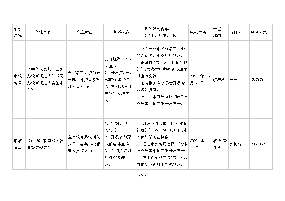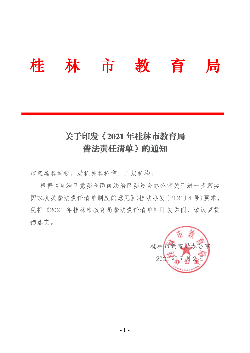 桂林市教育局关于印发2021年普法责任清单的通知