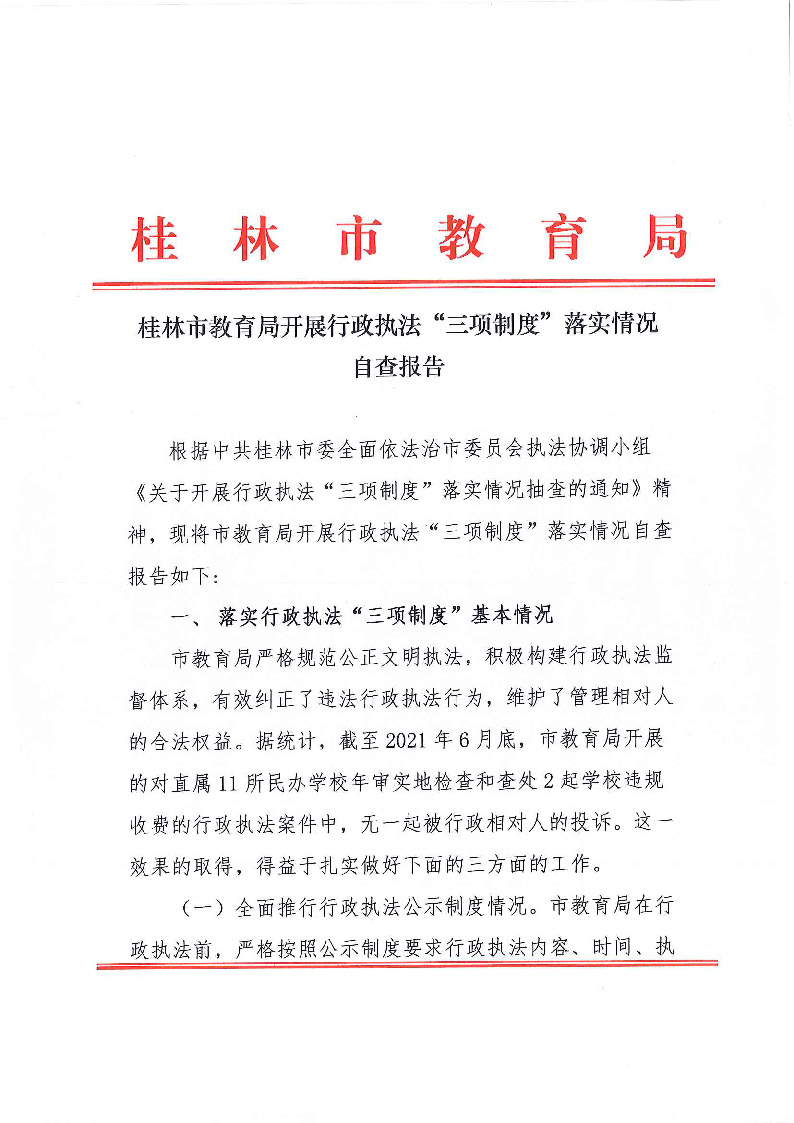 桂林市教育局开展行政执法“三项制度”落实情况自查报告
