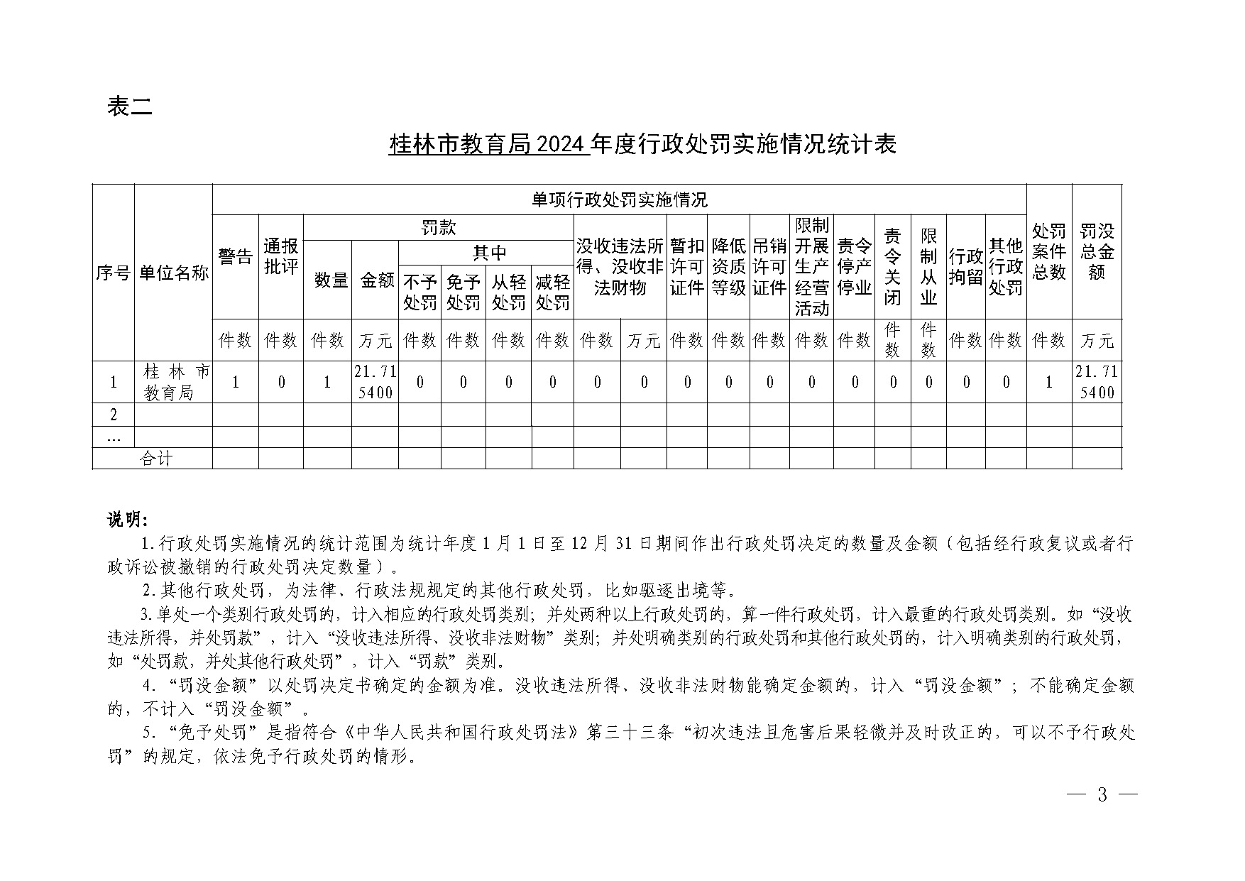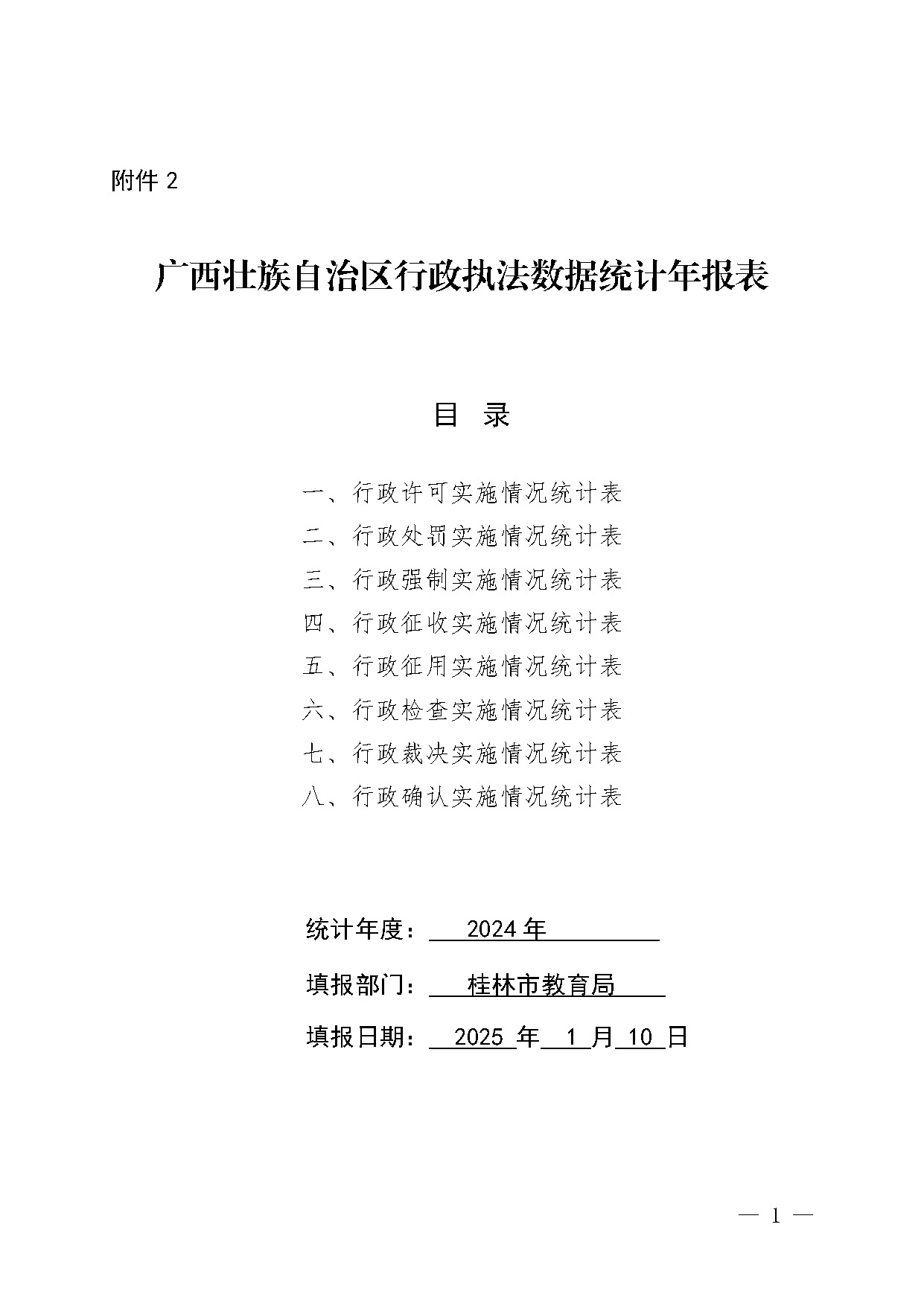 桂林市教育局2024年行政执法数据统计年报表