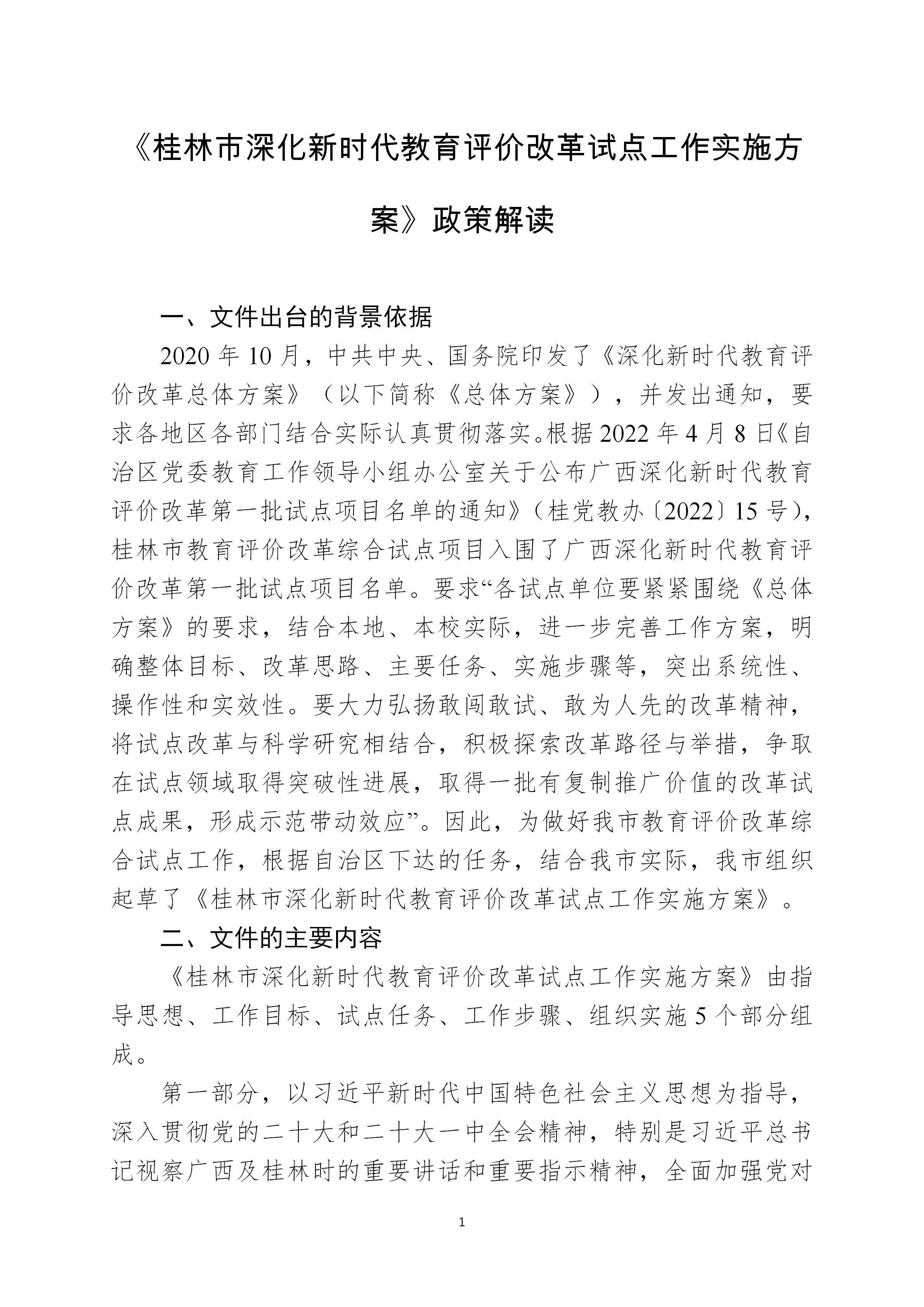 《桂林市深化新时代教育评价改革试点工作实施方案》政策解读