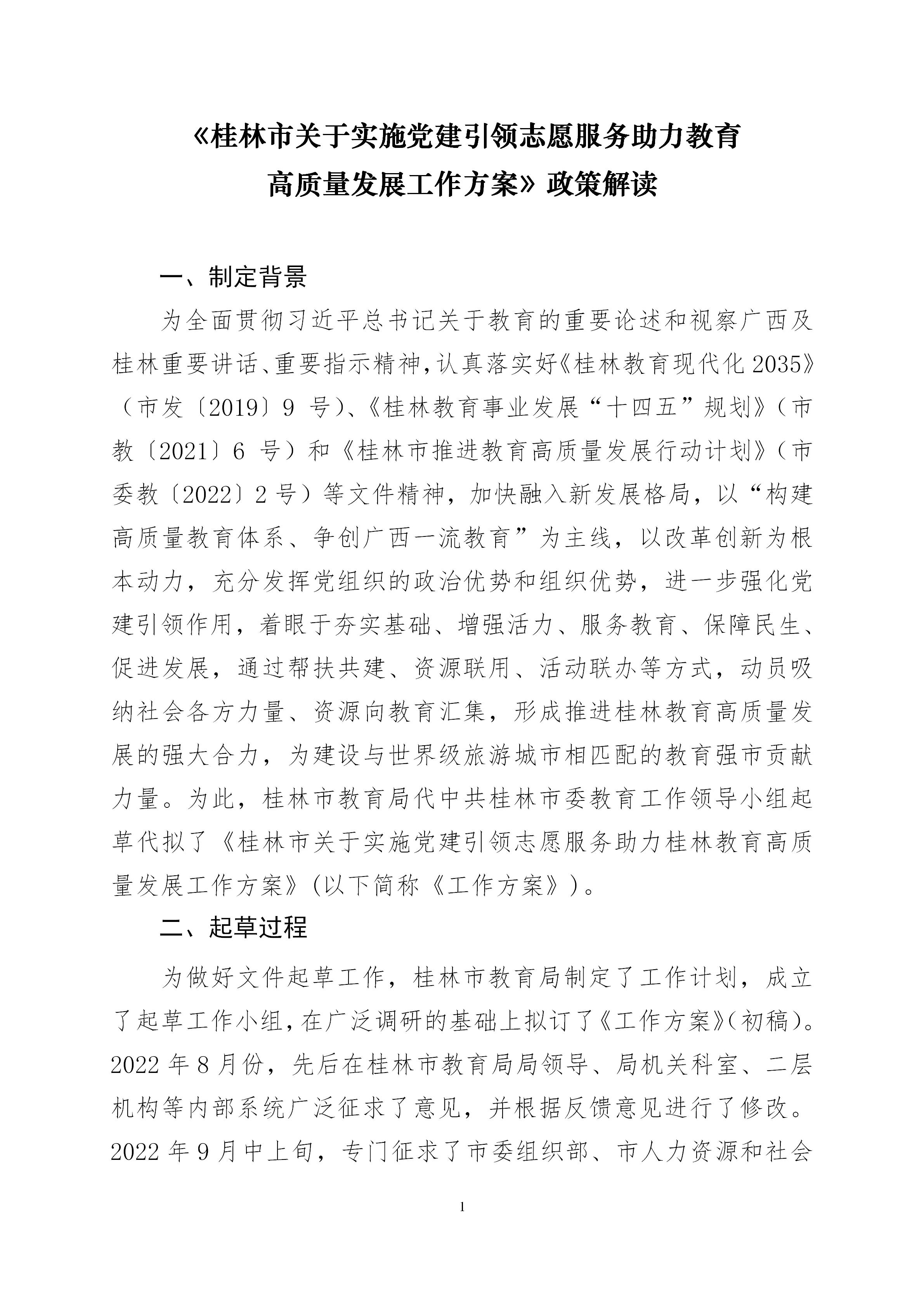 《桂林市关于实施党建引领志愿服务助力教育高质量发展工作方案》政策解读