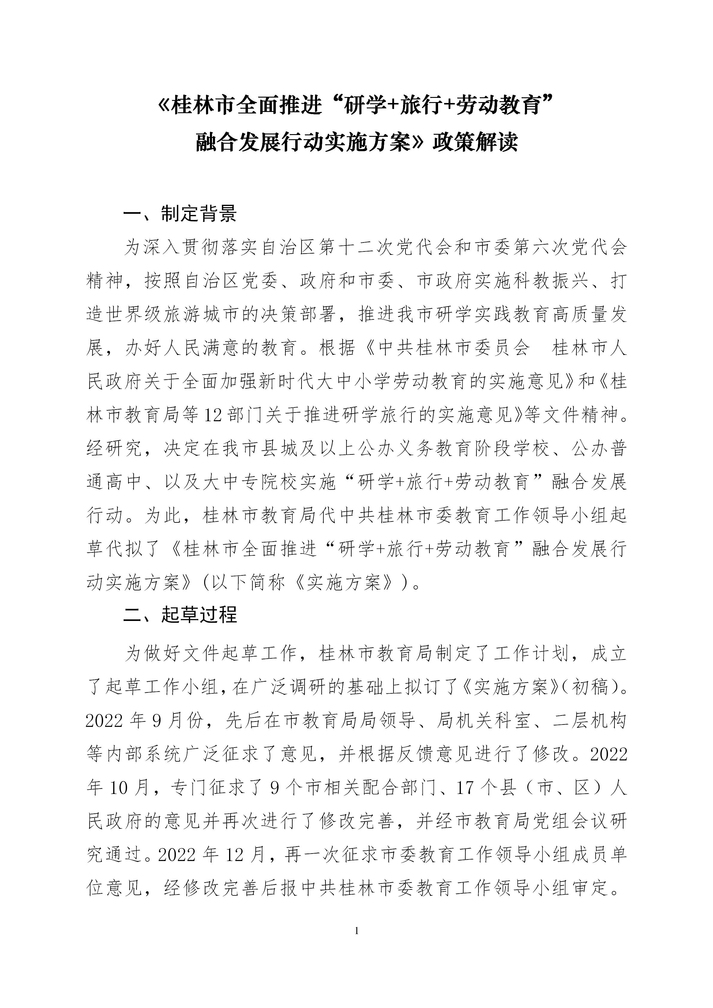 《桂林市全面推进“研学+旅行+劳动教育” 融合发展行动实施方案》政策解读